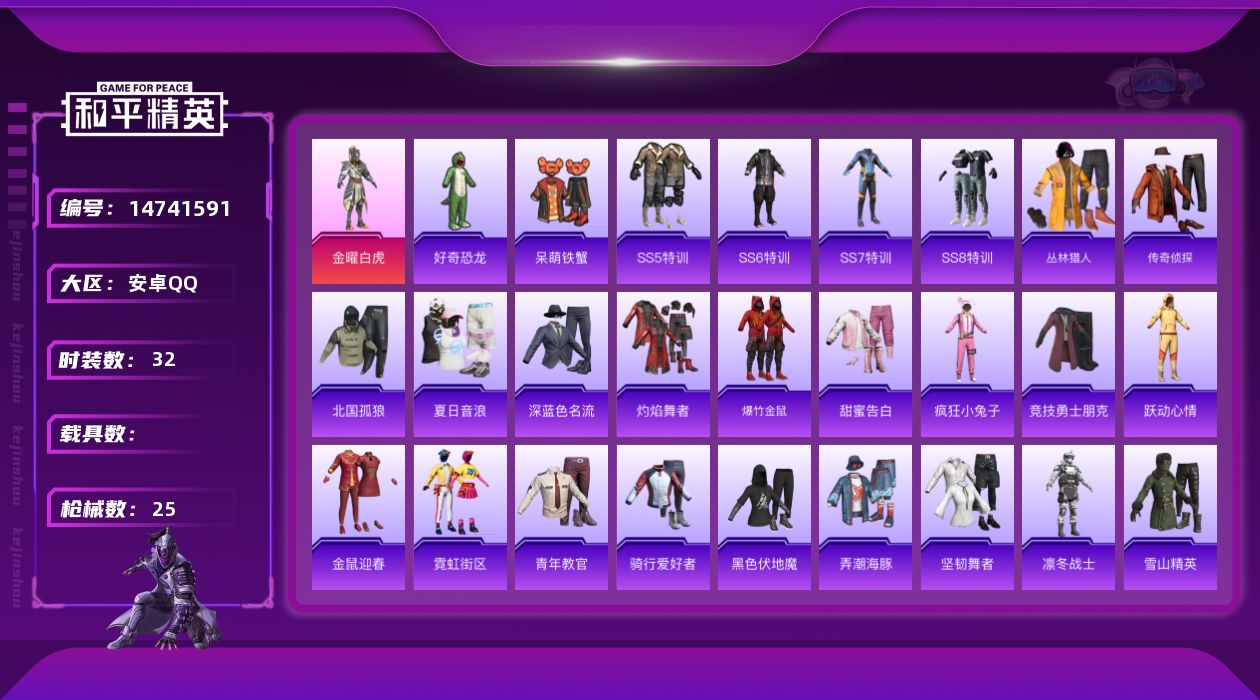 [14741591]可二次【店主推荐捡漏号!可直接换绑】 安卓 手Q-1粉装-8008热力值-1王牌印记-32套装-25枪皮【粉色套装】:粉装-金曜白虎