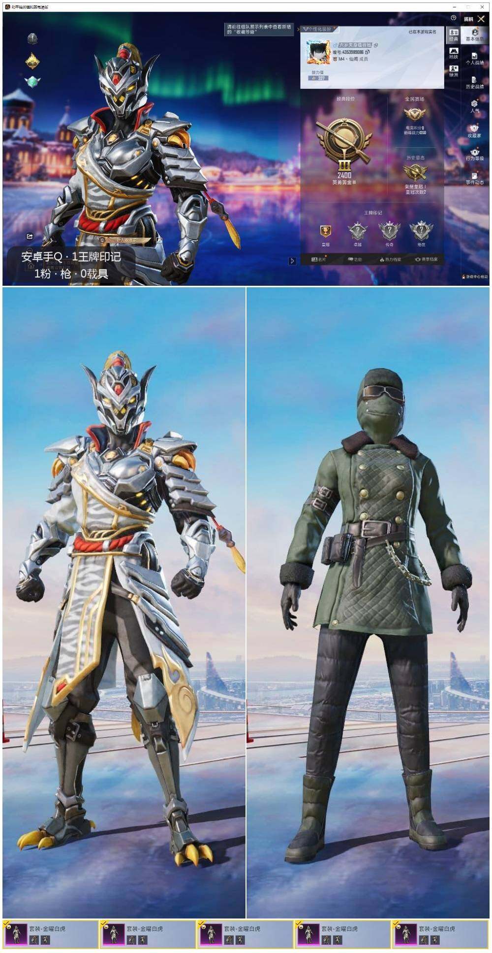 - [13113353]北方大区-46V-8王者-0炫金 【热门武器】:G36C-幻影,QBZ03-金色蔷薇,HK417-朱雀,M200-幻神,金色蔷薇-古蛇迷踪,修罗-古蛇迷踪,QBZ03-街机,Cat-刀锋,牛牛-AK47,M4A1-黑骑士,COP-白鲨,COP 357-幻灵*2,沙鹰-修罗,炽芒蝶刃 【音效卡】:M4A1-黑骑士音效卡,Barrett-毁灭音效卡,Barrett-极光音效卡,HK417-朱雀音效卡 【皮肤】:幻神-宠儿-2021MVP,M200-幻神-荣耀世冠白鲨,M200-幻神-N9-2022MVP,裁决-流光秘银,烈龙-星空,雷神-暗月,雷神-虎将,雷神-宠儿-2019MVP,火麒麟-华夏之心,传奇石头-横秒之巅,毁灭-暗月,毁灭耀金皮肤,毁灭-星空,M4A1-黑龙-361,AK47-黑武士-361,AWM-天龙-传奇白鲨,极光-高能霹雳 皮肤,修罗-冠军之魂 【角色】:王者-零-国色天香,王者春,王者潘多拉,王者沙漠玫瑰,蛇隐宗,奇洋探员,暗夜-X,飞虎队-X,风暴女,虎妞,灵狐者-X,曼陀罗-X,潘多拉-X,蛇姬,樱-缤纷夏日 【人偶武器】:COP-白鲨,白虎-迷你小艾,天龙-曼陀罗,火麒麟-灵狐,M4A1-雷神-精英刀锋,AK47-斯沃特,Barrett-夜玫瑰,Cat-刀锋,牛牛-AK47,迷你牛牛 【暴走生化】:超级对讲机 【挑战大师】:冰龙粉碎者-白马银枪 【英雄级武器】:AK47-火麒麟,M4A1-雷神,M4A1-黑骑士,HK417-朱雀,G36C-幻影,黑武士-锦绣游龙,金色蔷薇-古蛇迷踪,QBZ03-金色蔷薇,QBZ-03-王者蔷薇-觉醒版,AWM-天龙,Barrett-毁灭,Barrett-极光,AWM-裁决,M200-幻神,沙鹰-修罗,COP 357-幻灵*2,修罗-古蛇迷踪,屠龙*2,炽芒蝶刃,王者之锋-觉醒版,高爆手雷-雷霆,高爆手雷-幻灵*7,手雷-热带奇洋,高爆手雷-古蛇迷踪,闪光弹-雷霆,闪光弹-幻灵*7,烟雾弹-雷霆*2,烟雾弹-幻灵*7,烟雾弹-古蛇迷踪 【特殊枪械】:1黑骑士