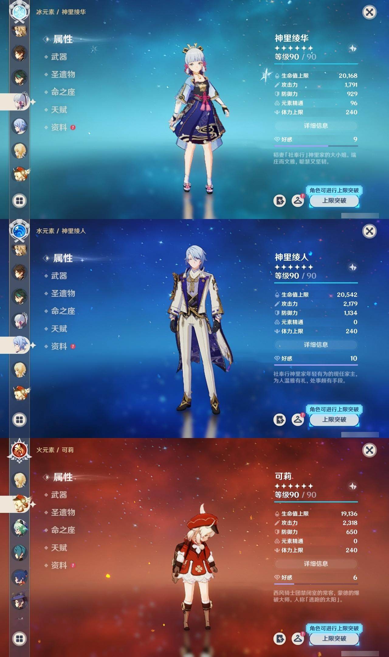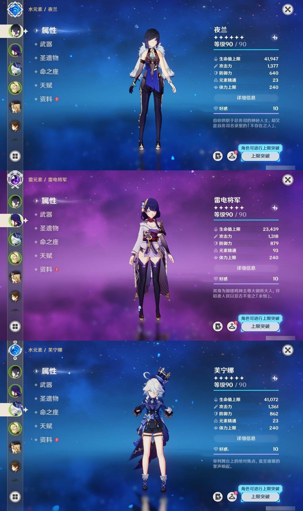 雷电将军,钟离,魈,神里凌华,可莉,莫娜,迪卢克,琴,七七