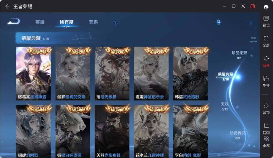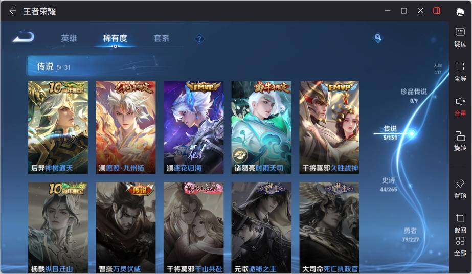 - [12319245]V7 6传说 123英雄 149皮肤 可修改实名 优质装备:一念神魔,超时空战士-狄仁杰,神器·狴犴令,山海·炽霜斩(李信年限),夜礼服假面 珍宝阁皮:蔷薇恋人 限定皮:逐霄战戟,飞衡(韩信年限),齐天大圣,五谷丰年,岱宗(典韦年限),李小龙,冰霜恋舞曲,神器·万象笔,山海·玄木吟(马可年限) 史诗皮:绮世丹青,特工魅影,千年之狐,永昼,百解令(蒙犽),无限星赏官,时之恋人-孙尚香,节奏热浪,女仆咖啡,摇滚巨星,水果甜心,天才门将,时之奇旅-安琪拉,鬼剑武藏,纤云弄巧,拒霜思,水晶猎龙者,鹰眼统帅,无心