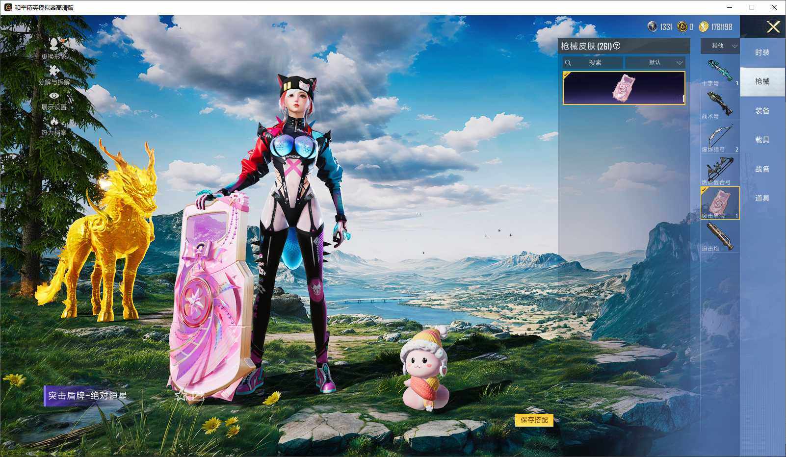AKM-炫紫旋律,SCAR-L-金蛇镇世,M416-电玩时刻,GROZA-镜光银凌,AUG-暖羊咩咩,Kar98K-巳巳如意