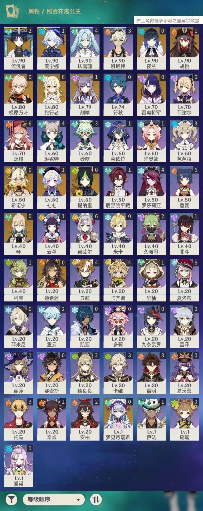 [14742778]57级/23黄/女主/13个五星角色/4个五星武器