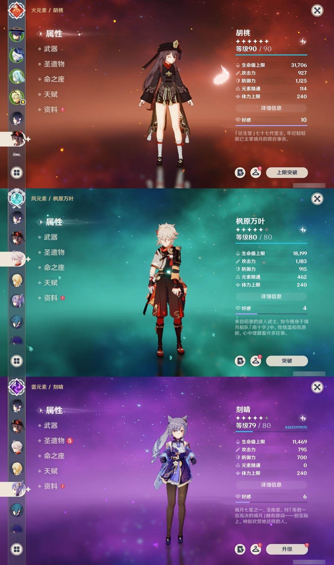 胡桃,枫原万叶,刻晴,雷电将军,七七,琴