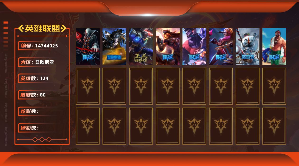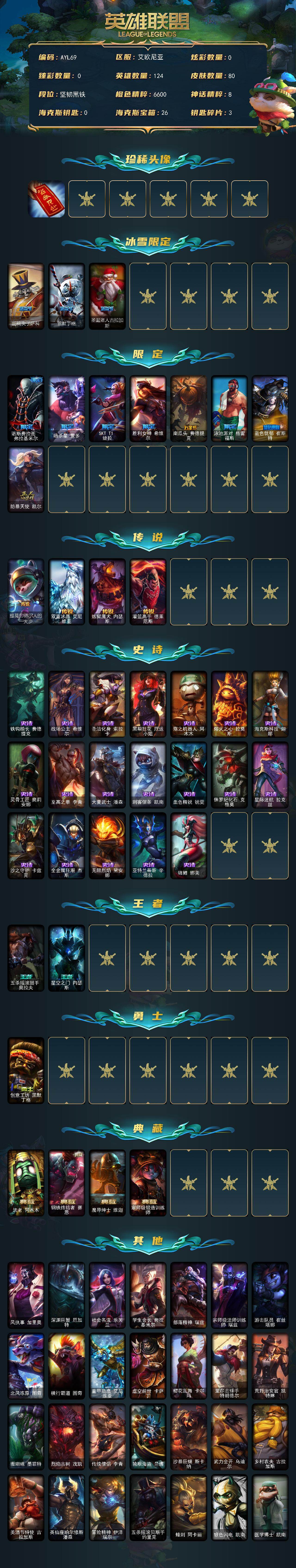 [14744025]【店主推荐捡漏号】未定级段位-124英雄-80皮肤-0炫彩-0终极-0神话-11限定-4传说-19史诗