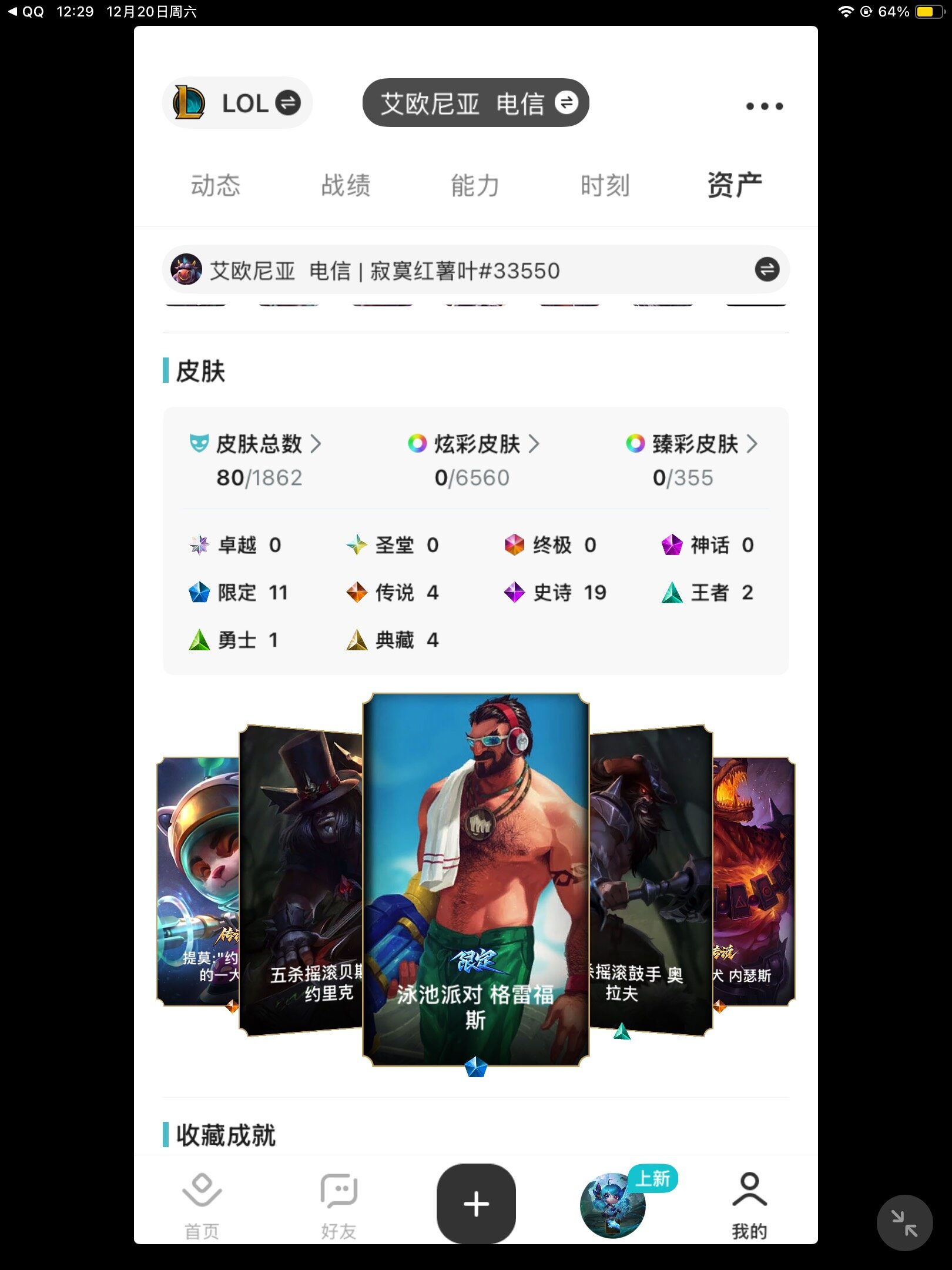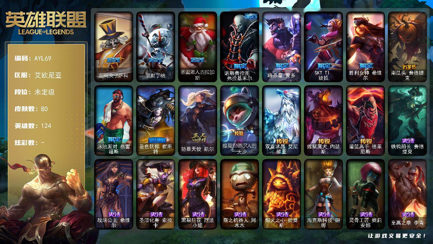 [14744025]【店主推荐捡漏号】未定级段位-124英雄-80皮肤-0炫彩-0终极-0神话-11限定-4传说-19史诗 【珍稀头像】:红包头像 【冰雪限定】:胡桃夹子萨科,雪默丁格,圣诞老人古拉加斯 【限定皮肤】:诺斯费拉图弗拉基米尔,暗杀星蒙多,SKTT1婕拉,胜利女神希维尔,南瓜头费德提克,泳池派对格雷福斯,蓝色忧郁崔斯特,防暴天使凯尔 【传说皮肤】:提莫约德尔人的一大步,双重冰晶艾尼维亚,炼狱魔犬内瑟斯,灌篮高手德莱厄斯 【史诗皮肤】:铁钩船长费德提克,战场公主希维尔,圣洁化身索拉卡,黑帮狂花厄运小姐,殇之机器人阿木木,熔火之心拉莫斯,海克斯科技迦娜,灵骨工匠奥莉安娜,至高之拳李青,大夏武士潘森,刺客信条凯南,血色精锐锐雯,侏罗纪化石克格莫,星际迷航拉克丝,沙之守护卡兹克,全金属狂潮杰斯,无限烈焰黛安娜,亚特兰蒂斯辛德拉,锦鲤娜美 【王者皮肤】:五杀摇滚鼓手奥拉夫,星空之门内瑟斯 【勇士皮肤】:创意工坊黑默丁格 【典藏皮肤】:法老阿木木,钢铁终结者赛恩,魔导绅士维迦,宗师级锻造训练师 【其他皮肤1】:风执事加里奥,深渊巨蟹厄加特,社会名流乐芙兰,学生会长弗拉基米尔,部落精神瑞兹,宗师级法师训练师瑞兹,游击队员崔丝塔娜,北风冻原图奇,横行霸道图奇,重甲猎鹰艾尼维亚,虚空前世卡萨丁,樱花乱舞卡尔玛,里尔击球手特朗德尔,荒野治安官凯特琳,珊瑚礁墨菲特,烈焰古树茂凯,传统僧侣李青,独眼海盗兰博,沙暴巨蝎斯卡纳,武力全开乌迪尔,乡村农夫古拉加斯,美酒节特使古拉加斯,英仙座珀尔修斯潘森,冒险精神伊泽瑞尔,五杀摇滚贝斯手约里克,蜂刺阿卡丽,银色闪电凯南,医学博士凯南,瓦尔基里蕾欧娜,刺客信条泰隆,极寒慎,炎爆慎,游侠法师拉克丝,战地法师泽拉斯,失落大陆菲兹,地底迷城诺提勒斯,任性学霸艾克,鲛妮座人娜美,泳池派对雷克塞