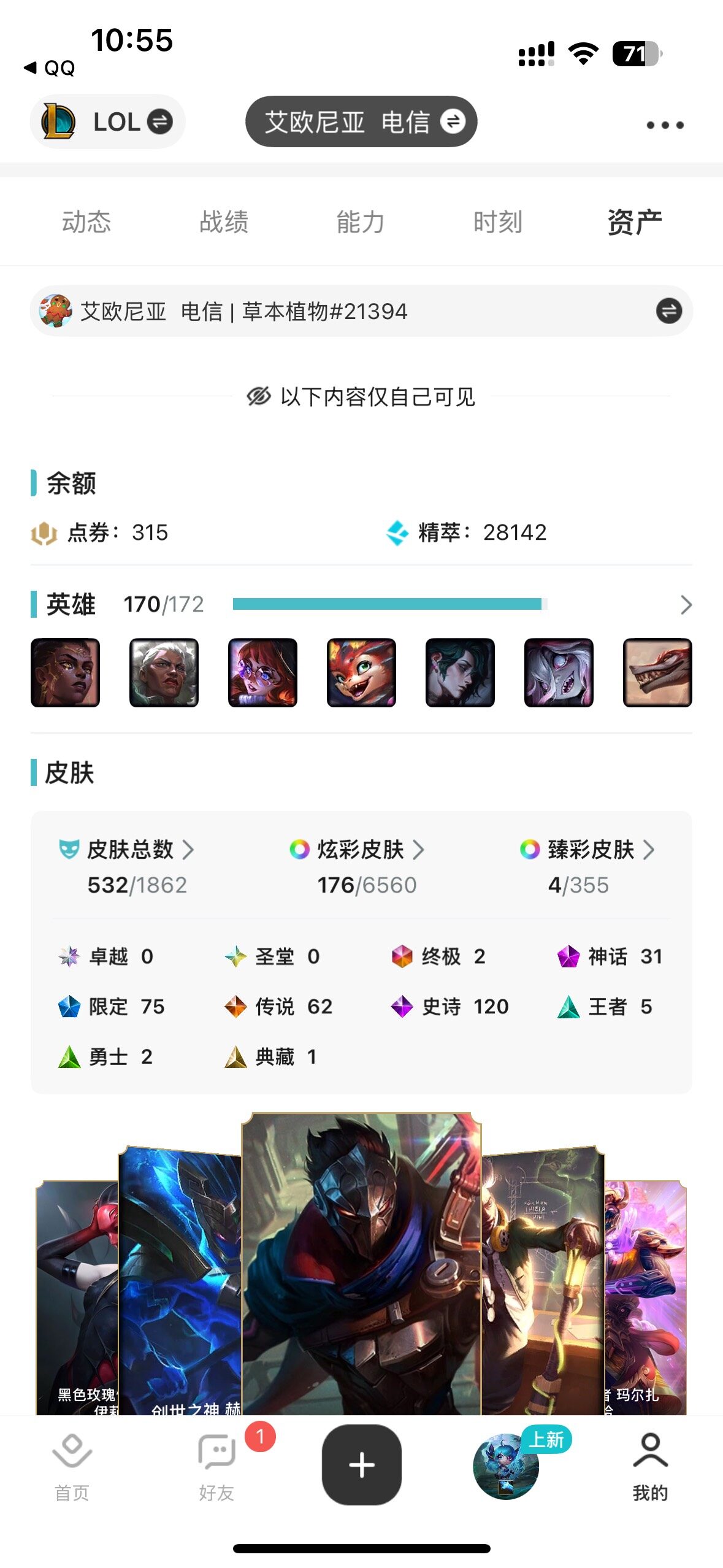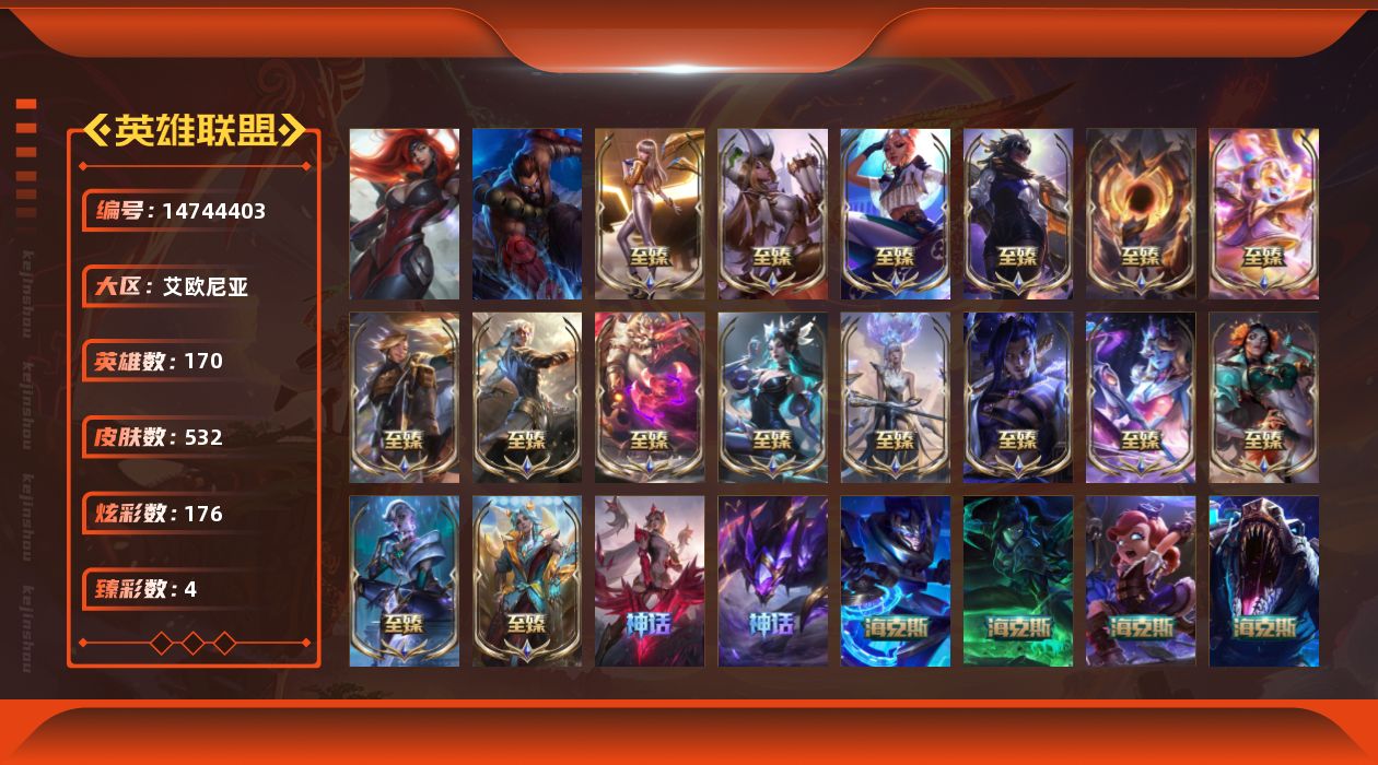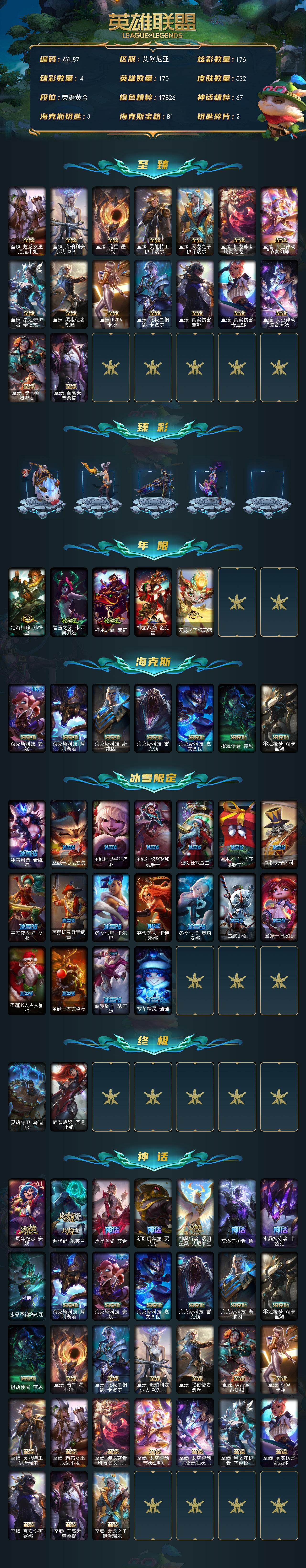 [14744403]可二次【店主推荐捡漏号!可直接换绑】黄金段位-170英雄-532皮肤-176炫彩-2终极-31神话-75限定-62传说-120史诗