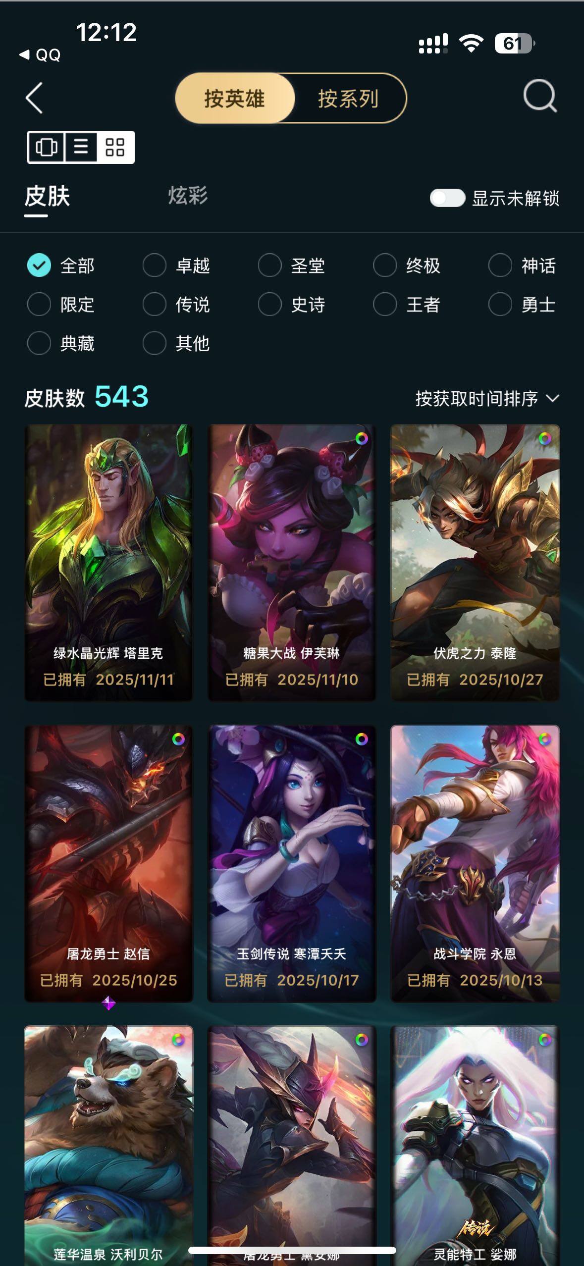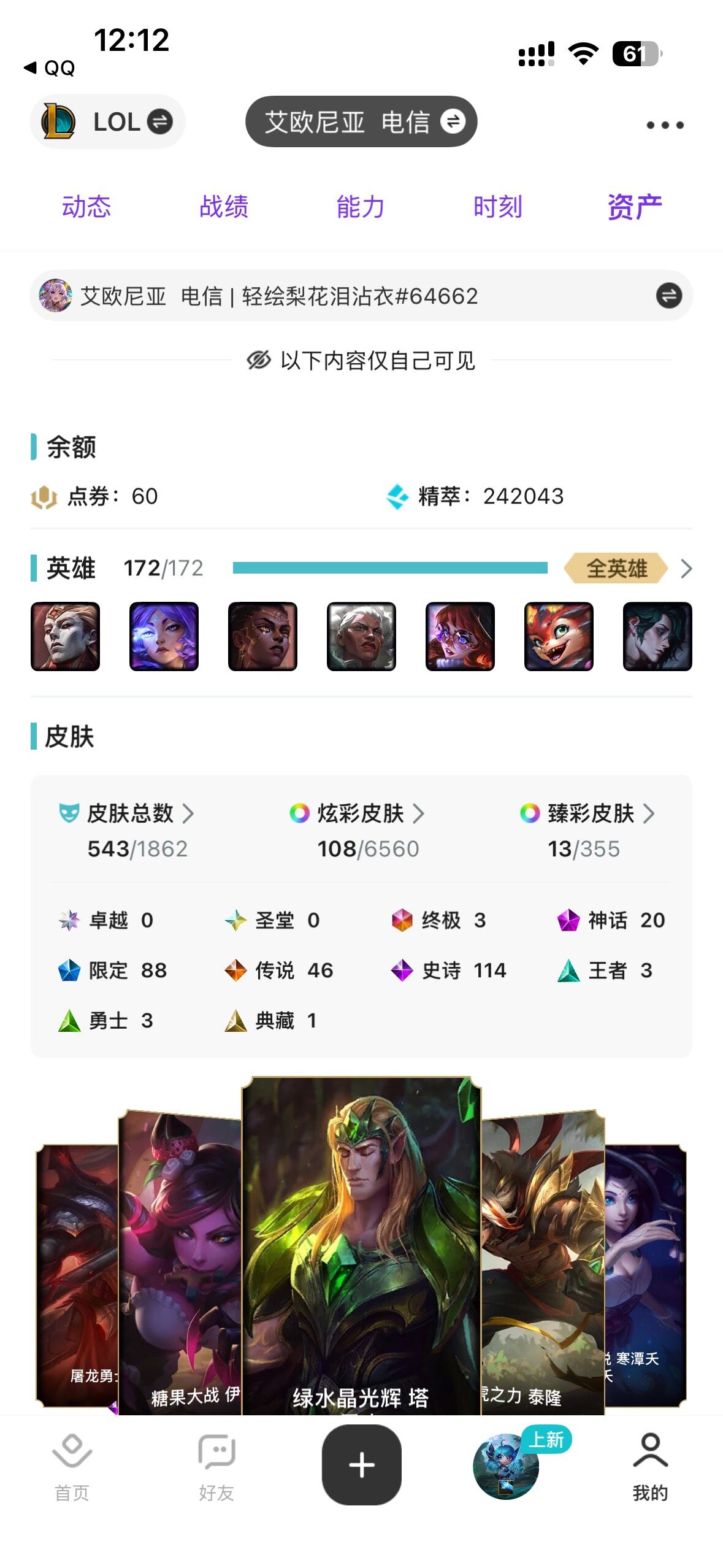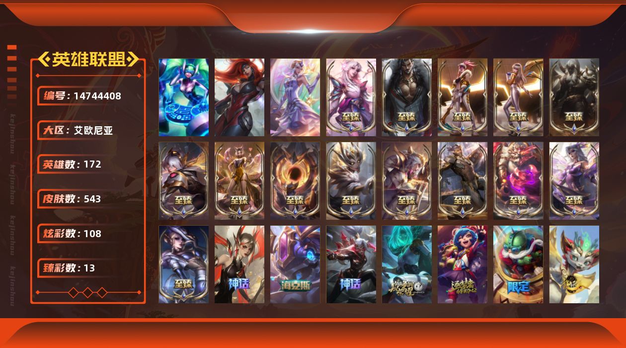 [14744408]可二次【店主推荐捡漏号!可直接换绑】黄金段位-172英雄-543皮肤-108炫彩-3终极-20神话-88限定-46传说-114史诗