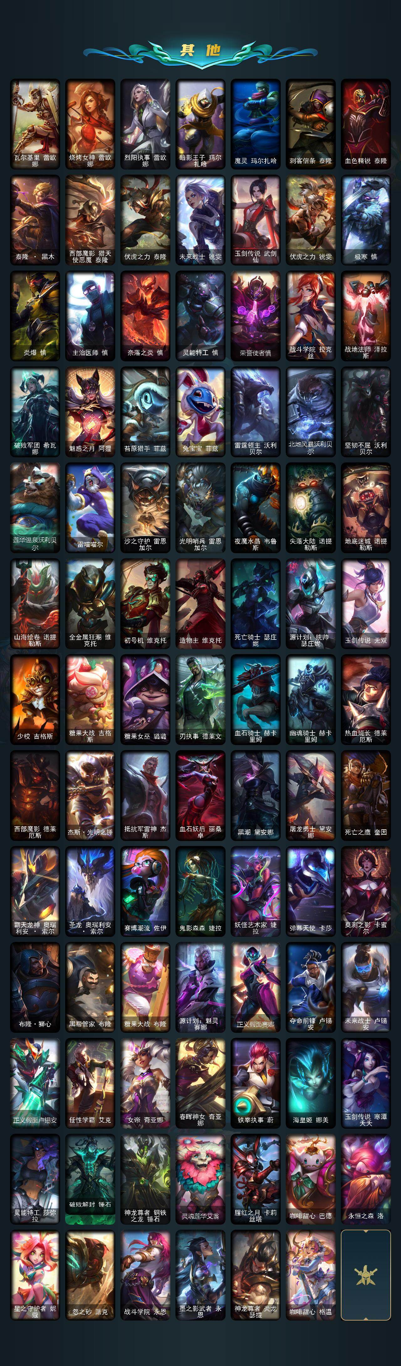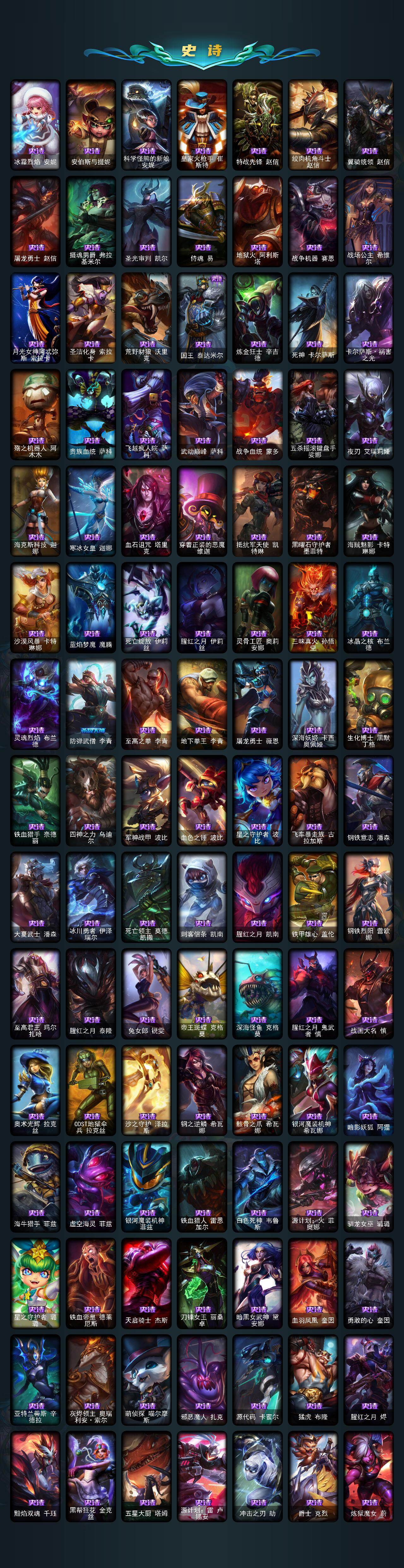 【神话皮肤】:十周年纪念安妮,源代码乐芙兰,殿堂传奇乐芙兰,神凰行者瑞羽圣凰艾尼维亚,殿堂传奇薇恩,海克斯科技克格莫,至臻西部魔影伊芙琳,至臻暗星墨菲特,至臻花仙使者卡特琳娜,至臻KDA阿卡丽,至臻KDA阿狸,至臻KDA卡莎,至臻魔女婕拉,至臻女帝黛安娜,至臻神龙尊者均衡之龙沃利贝尔,至臻腥红之月亚托克斯,至臻源计划逆流塞拉斯,至臻源计划正义艾瑞莉娅