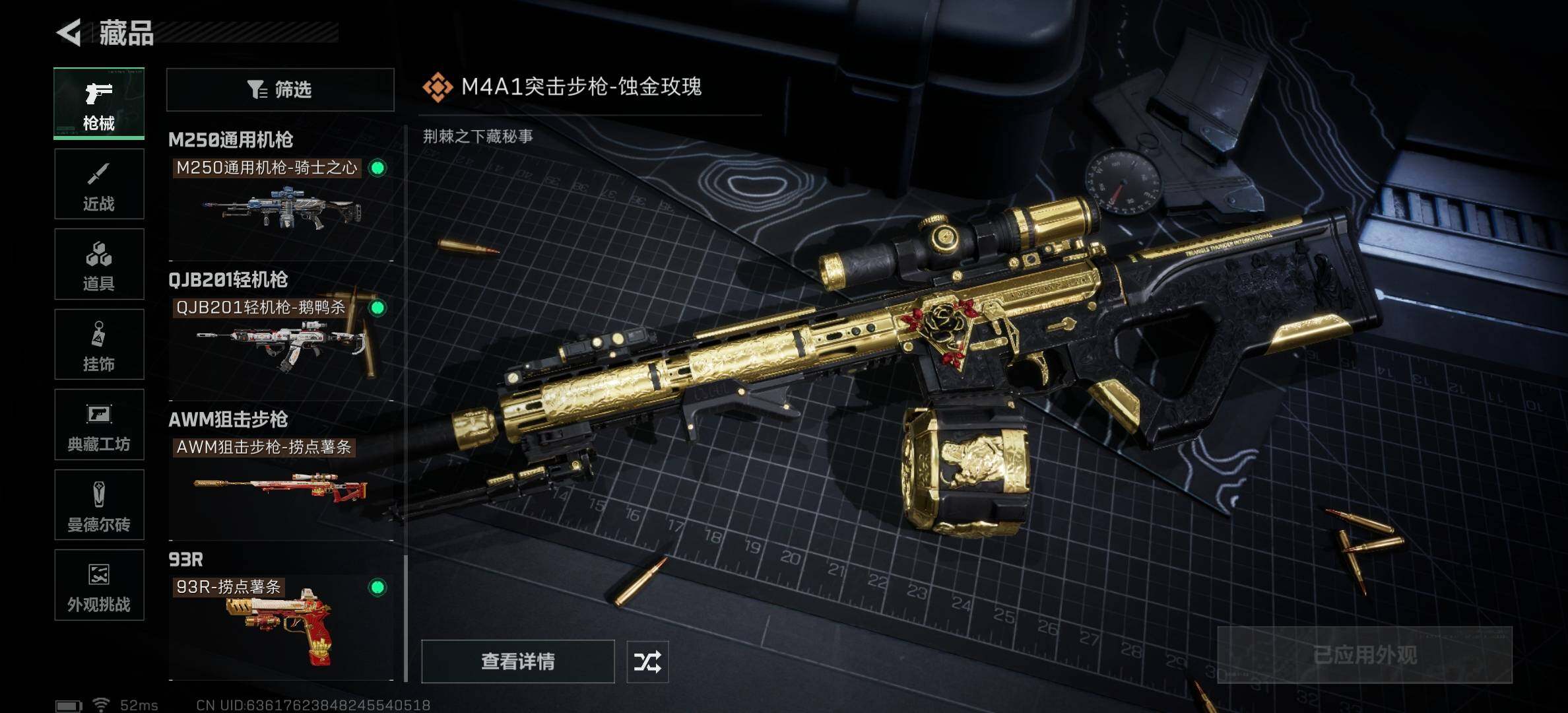 【稀有外观】:M1014霰弹枪-花岗岩,M4A1突击步枪-零点,M4A1突击步枪-繁盛,AKM突击步枪-战术演练,AKM突击步枪-肃杀,QBZ95-1突击步枪-公平竞技,ASh-12战斗步枪-繁盛,K416突击步枪-碳纤维,AUG突击步枪-前沿科技,M7战斗步枪-捣蛋鬼,AK-12突击步枪-零点,SCAR-H战斗步枪-荣耀列队,SCAR-H战斗步枪-黄昏,G3战斗步枪-战术演练,G3战斗步枪-主宰,腾龙突击步枪-冰天雪地,MP5冲锋枪-弄臣,MP5冲锋枪-虎啸,MP5冲锋枪-哈夫克卫队,P90冲锋枪-黄昏,P90冲锋枪-捣蛋鬼,Vector冲锋枪-先锋,UZI冲锋枪-亚特兰蒂斯,SMG-45-行动开启,SMG-45冲锋枪-幻影结构,