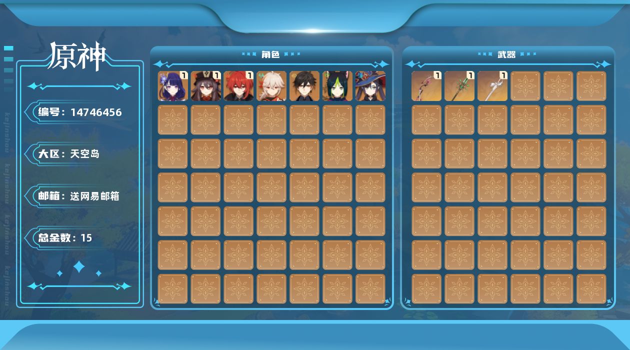 [14746456]55级/15黄/男主/8个五星角色/4个五星武器