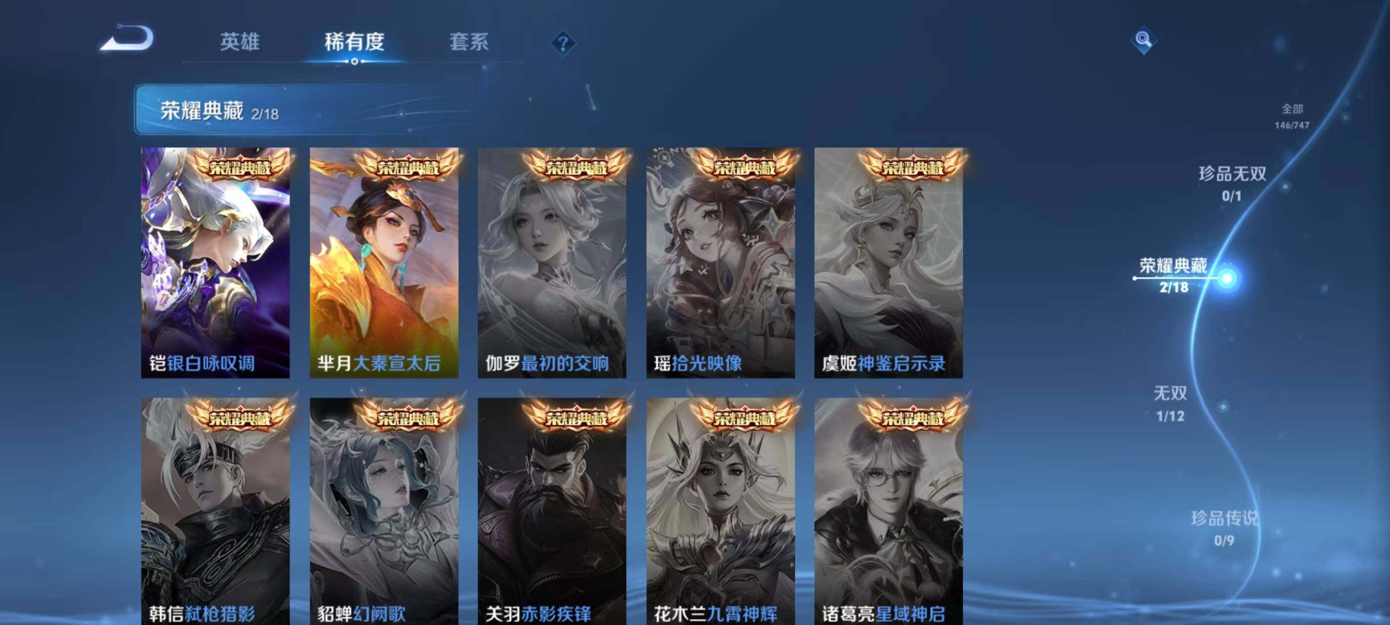 [14746899]按键4 安卓WX-146皮肤-2典藏皮肤-1无双-10传说-42史诗 【荣耀典藏】:芈月大秦宣太后,铠银白咏叹调 【无双皮肤】:韩信群星魔术团 【传说皮肤】:桑启鸣野蒿,澜逐花归海,吕布遇见神鼓,吕布怒海麟威,赵云淬星耀世,虞姬启明星使,后羿黄金射手座,孙尚香末日机甲,宫本武藏地狱之眼,吕布天魔缭乱 【限定皮肤】:白起狰,狄仁杰阴阳师,虞姬凯尔特女王,赵云皇家上将,鲁班七号狮舞东方,钟无艳超时空战士,孙膑妖精王,扁鹊炼金王,芈月重明,吕布天魔缭乱,吕布御风骁将,吕布遇见神鼓,元歌云间偶戏,夏侯惇朔风刀,甄姬落雪兰心,曹操烛龙,典韦穷奇,狄仁杰魔术师,狄仁杰万华元夜,达摩沙漠行僧,项羽海滩派对,程咬金演武夺筹,兰陵王金庭之子,亚瑟潮玩骑士王,孙悟空至尊宝,牛魔御旌,后羿圣弓游侠,李元芳云中旅人,虞姬启明星使,钟馗神迹守卫,干将莫邪真爱魔法,雅典娜黎明之约,太乙真人饕餮,鬼谷子原初探秘者,鬼谷子五谷丰年,苏烈千军破阵,百里玄策原初追逐者,弈星混沌棋,梦奇顽趣,沈梦溪大漠名商,裴擒虎擒涛扼浪,狂铁御狮,米莱狄御霄,盾山御銮,嫦娥暖冬兔眠,鲁班大师探海日志,桑启海盐诗旅,暃星界游侠,张良古海寻踪,蒙恬荣光圣徽,鬼谷子天穹祈灯,姬小满妄想食味,刘邦剑破天穹,韩信群星魔术团 【年限皮肤】:吕布御风骁将 【赛季限定】:孙膑妖精王,扁鹊炼金王,白起狰,芈月重明,夏侯惇朔风刀,曹操烛龙,典韦穷奇,狄仁杰万华元夜,达摩沙漠行僧,程咬金演武夺筹,兰陵王金庭之子,张良古海寻踪,牛魔御旌,李元芳云中旅人,虞姬凯尔特女王,雅典娜黎明之约,太乙真人饕餮,鬼谷子原初探秘者,苏烈千军破阵,百里玄策原初追逐者,弈星混沌棋,梦奇顽趣,沈梦溪大漠名商,裴擒虎擒涛扼浪,狂铁御狮,米莱狄御霄,盾山御銮,鲁班大师探海日志,桑启海盐诗旅,鬼谷子天穹祈灯,蒙恬荣光圣徽,刘邦剑破天穹 【战令限定】:鲁班七号狮舞东方,钟无艳超时空战士,元歌云间偶戏,甄姬落雪兰心,亚瑟潮玩骑士王,后羿圣弓游侠,钟馗神迹守卫,干将莫邪真爱魔法,嫦娥暖冬兔眠,暃星界游侠 【史诗皮肤】:鲁班七号电玩小子,露娜紫霞仙子,阿轲暗夜猫娘,赵云皇家上将,甄姬冰雪圆舞曲,王昭君偶像歌手,狄仁杰魔术师,廉颇地狱岩魂,孙尚香水果甜心,嬴政暗夜贵公子,妲己魅力维加斯,墨子金属风暴,吕布圣诞狂欢,刘禅绅士熊喵,吕布末日机甲,张飞乱世虎臣,孙悟空至尊宝,花木兰
