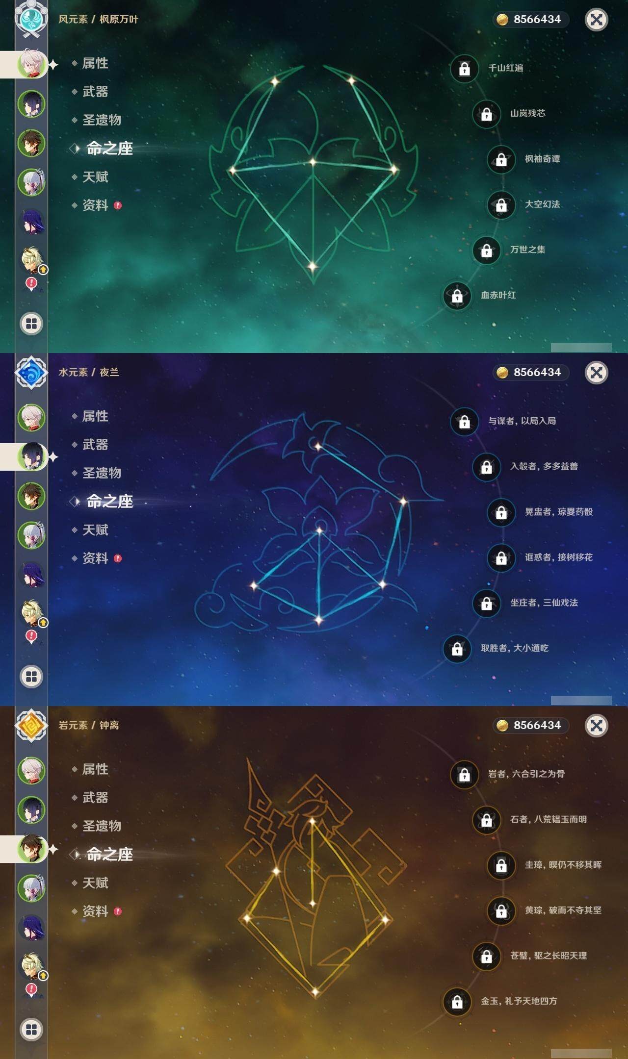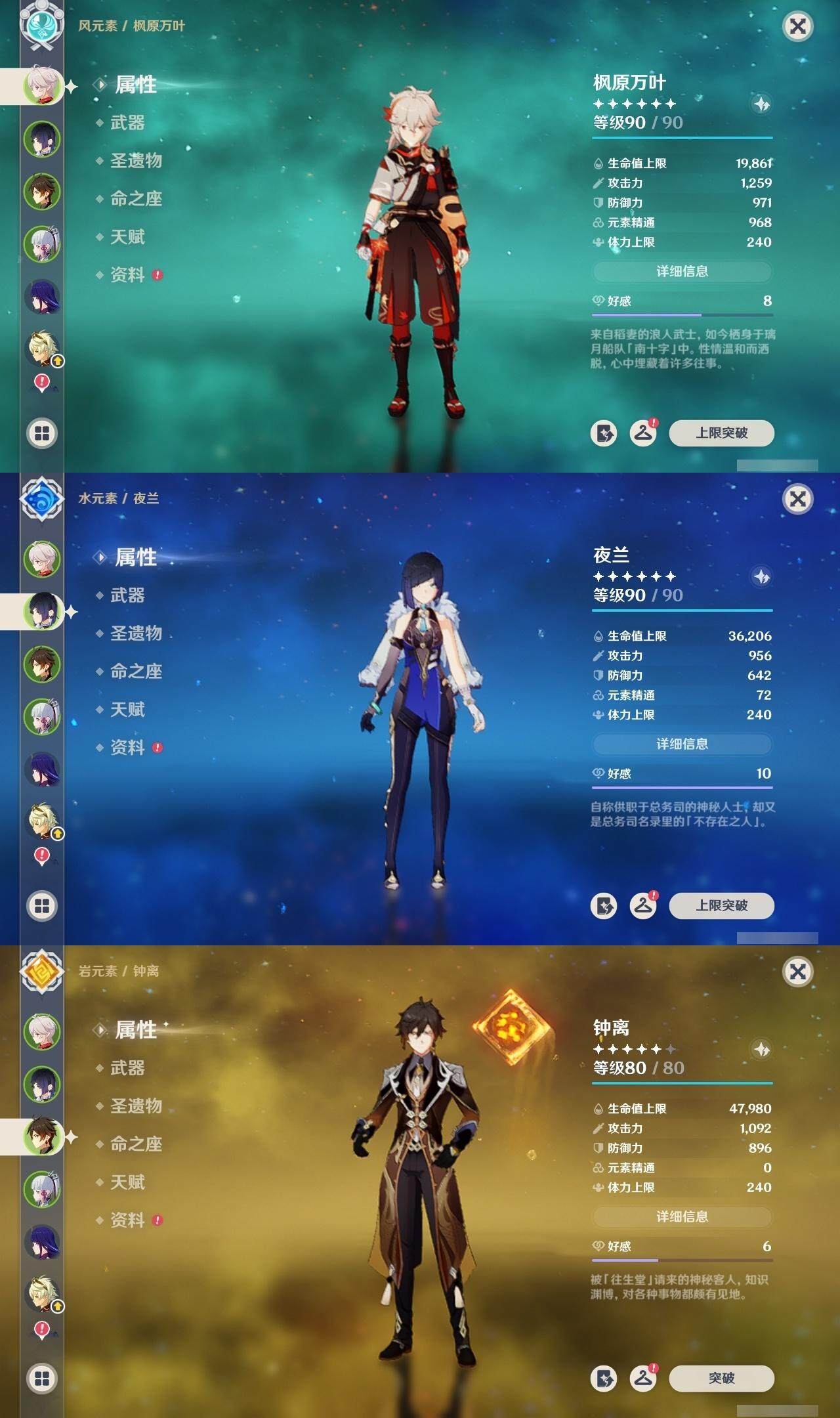 枫原万叶,钟离,神里凌华,雷电将军,莫娜,温迪,琴,刻晴,迪卢克