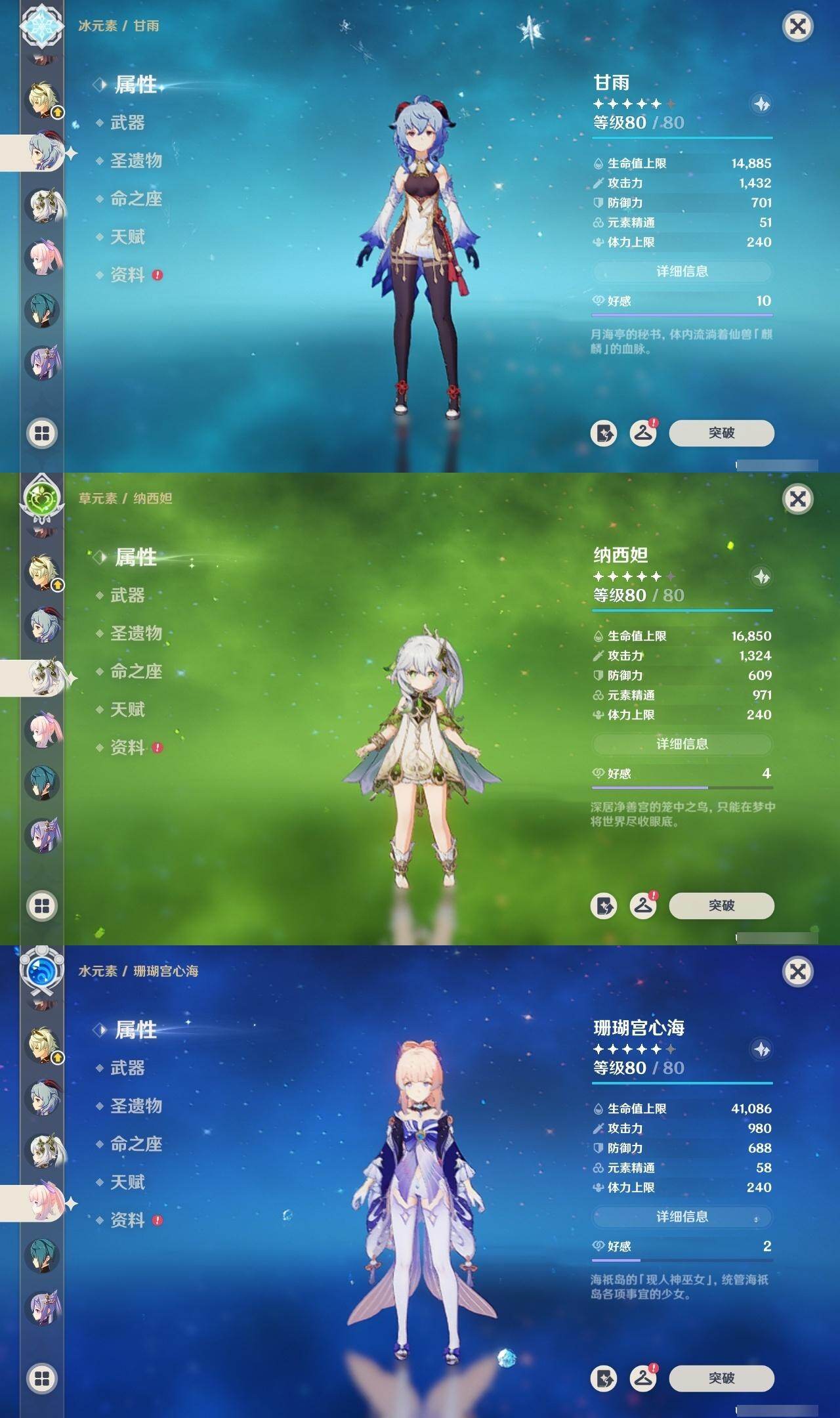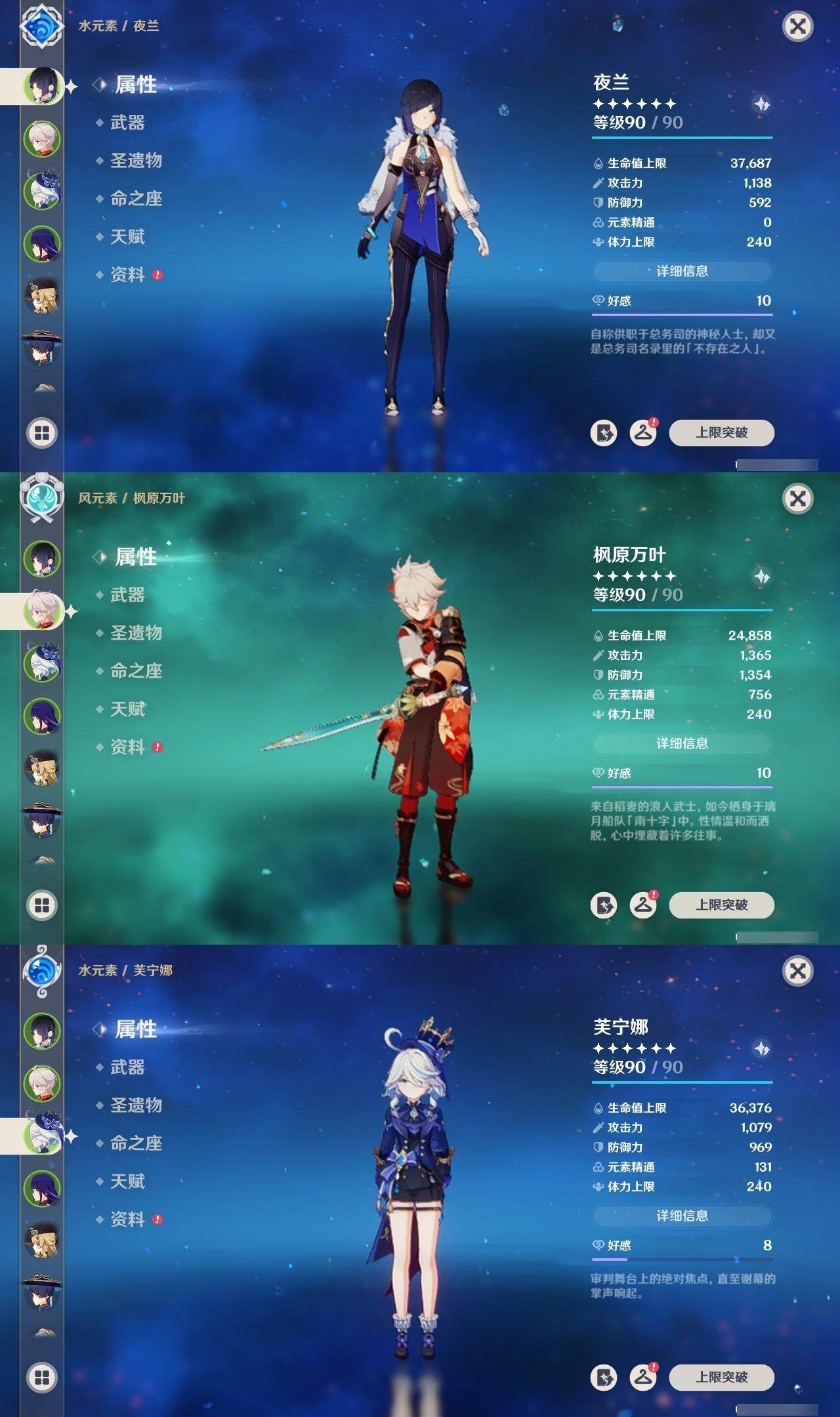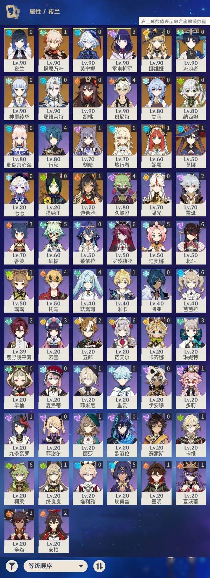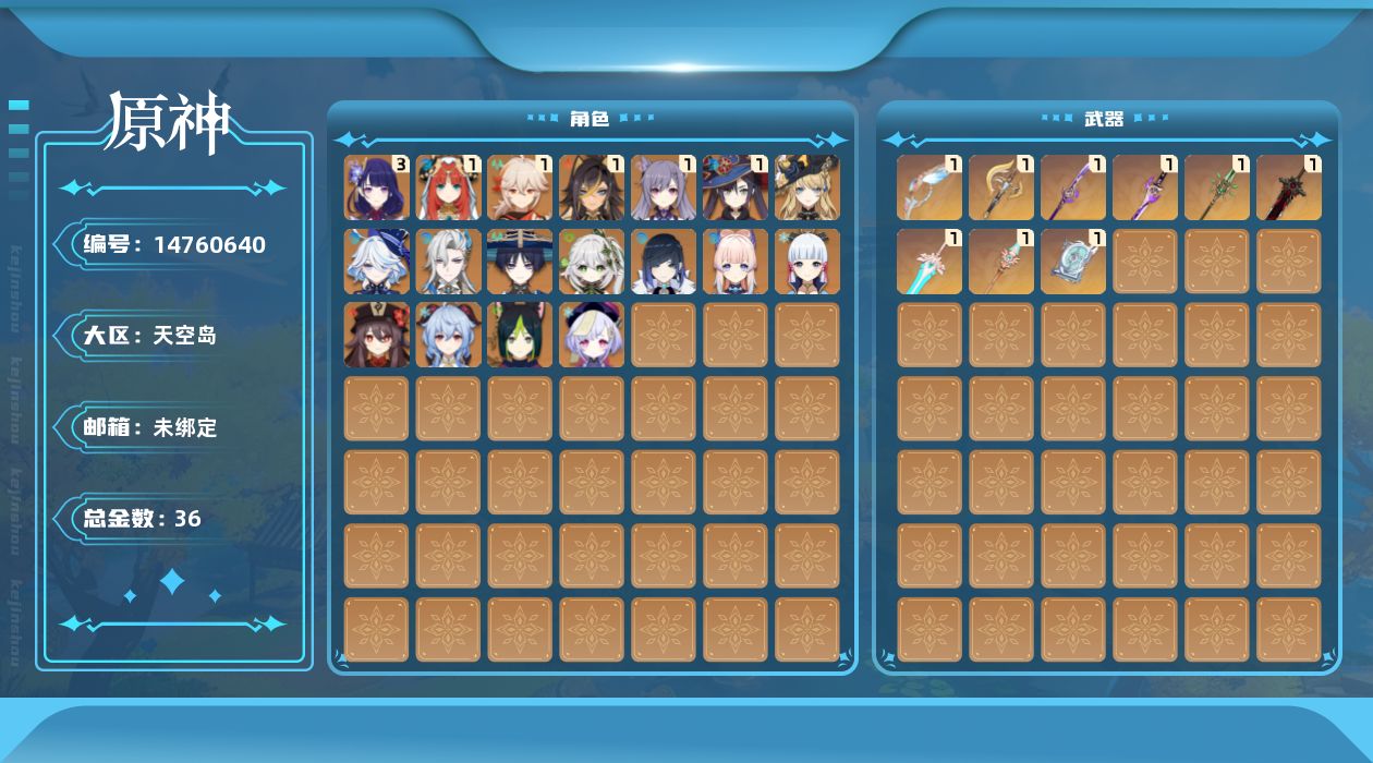 [14760640]58级/36黄/女主/18个五星角色/10个五星武器