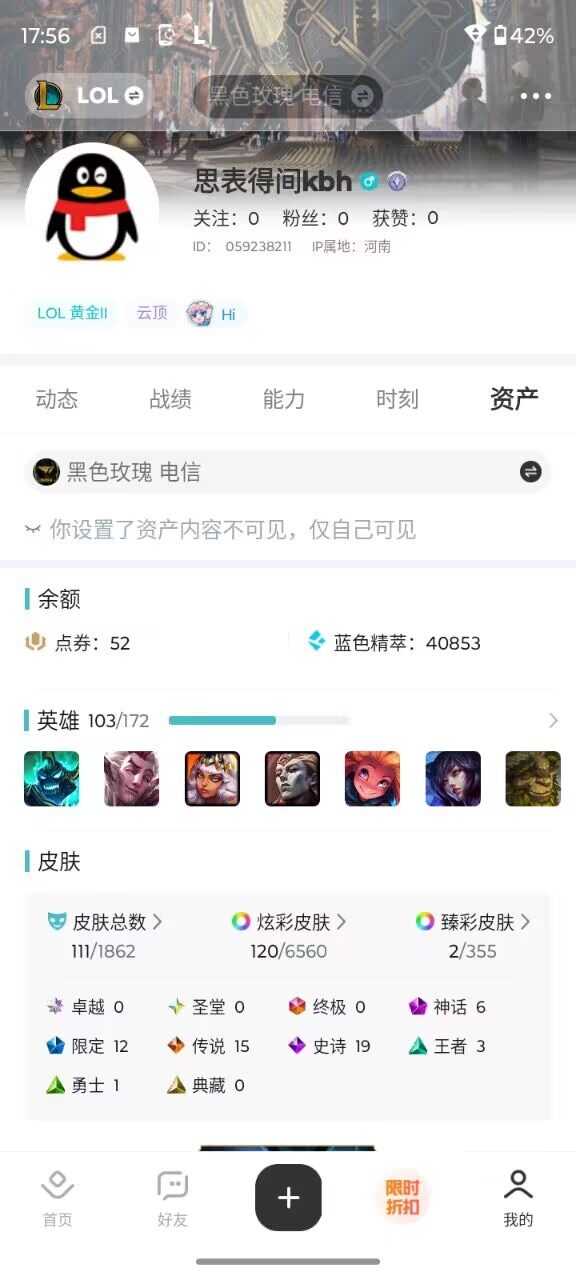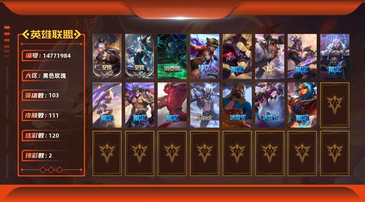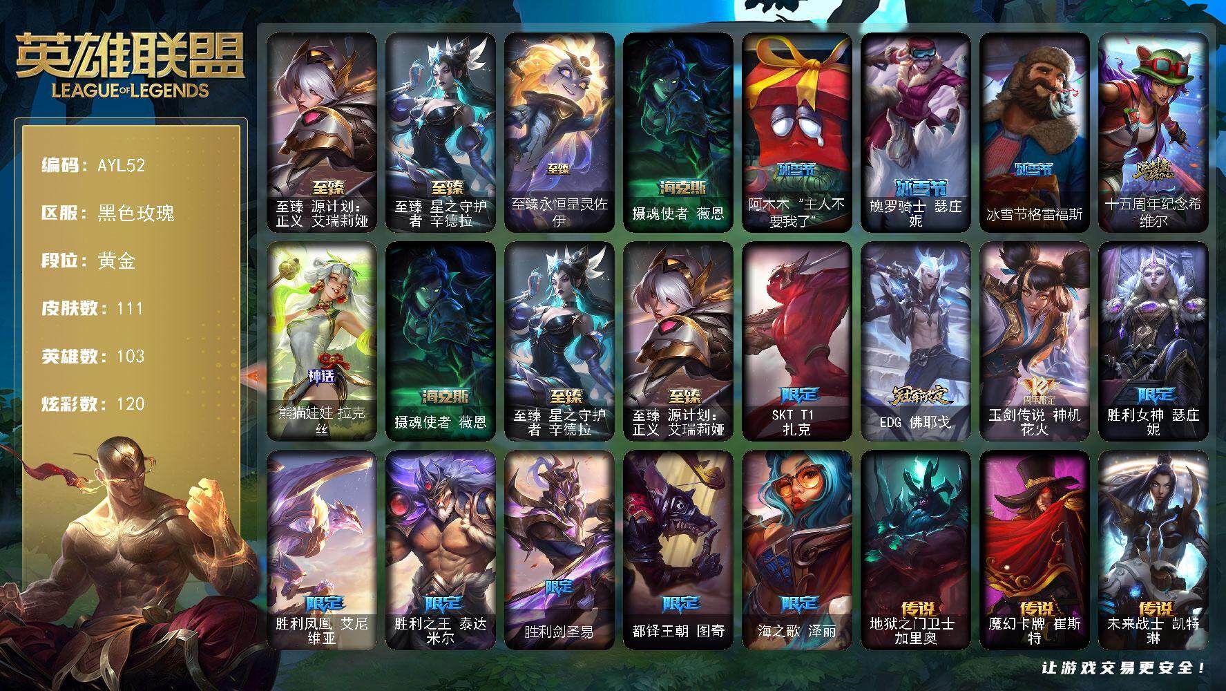 [14771984]黄金段位-103英雄-111皮肤-120炫彩-0终极-6神话-12限定-15传说-19史诗