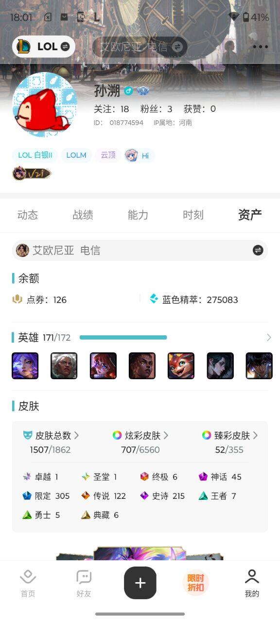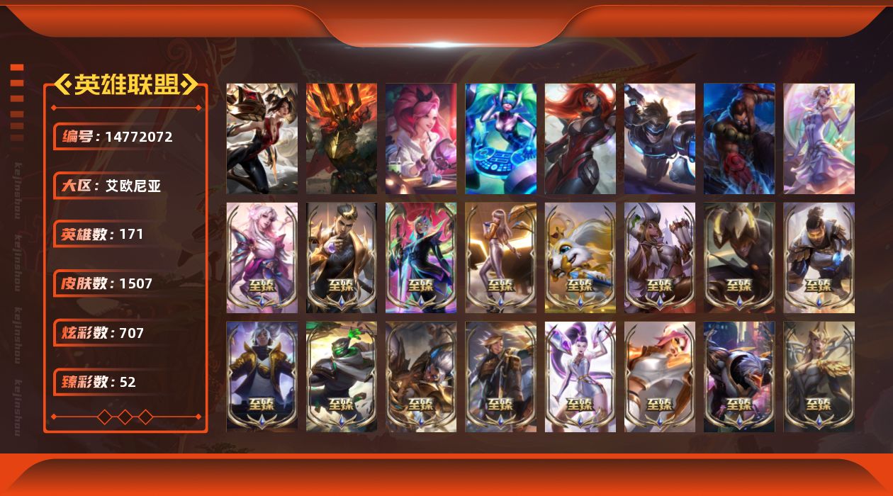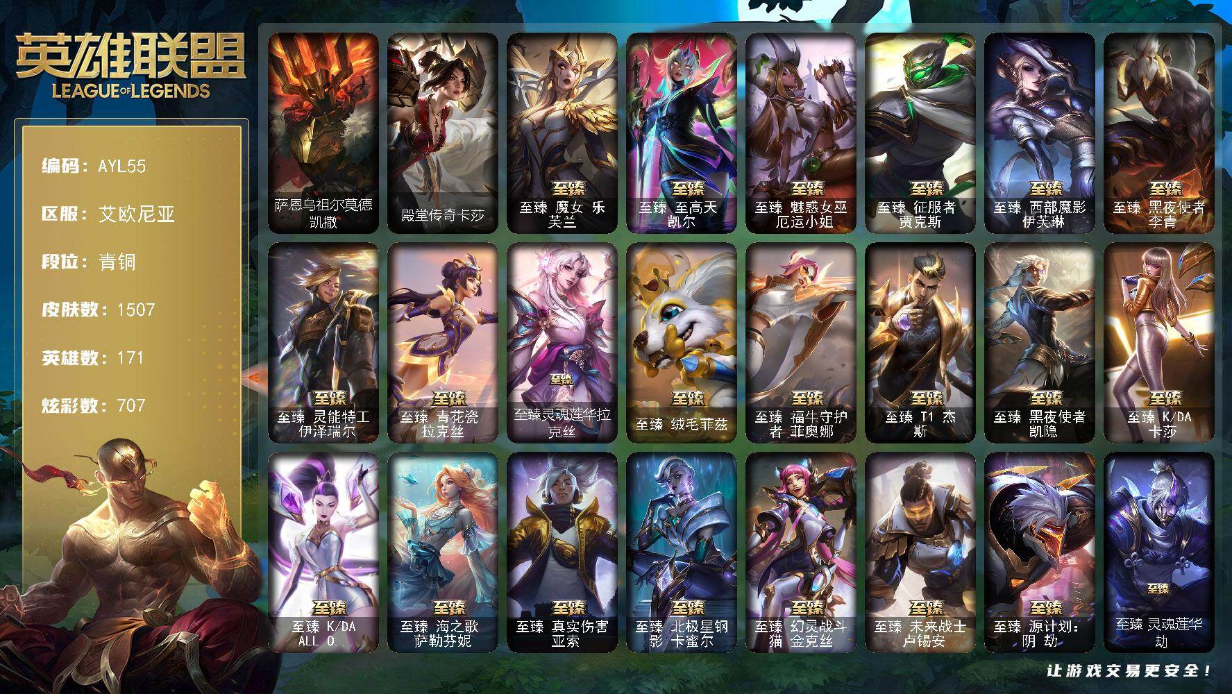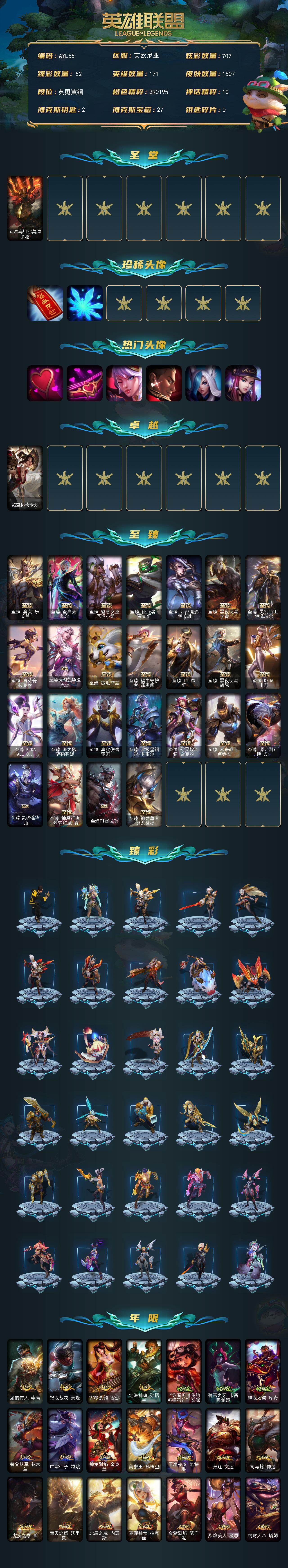 [14772072]可二次【店主推荐捡漏号!可直接换绑】 青铜段位-171英雄-1507皮肤-707炫彩-8终极-45神话-305限定-122传说-215史诗