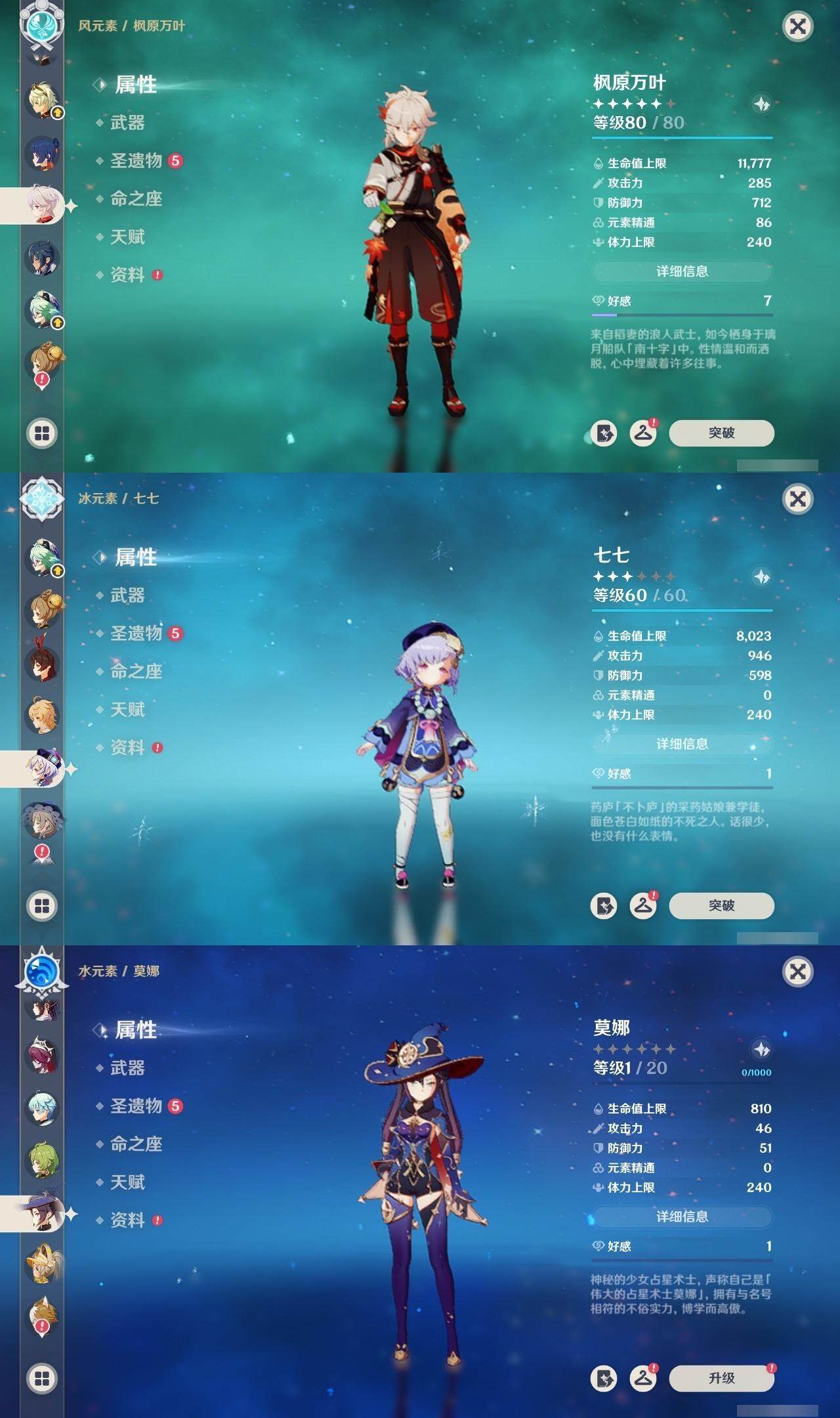 琴,神里凌华,雷电将军,迪卢克,枫原万叶,七七,莫娜