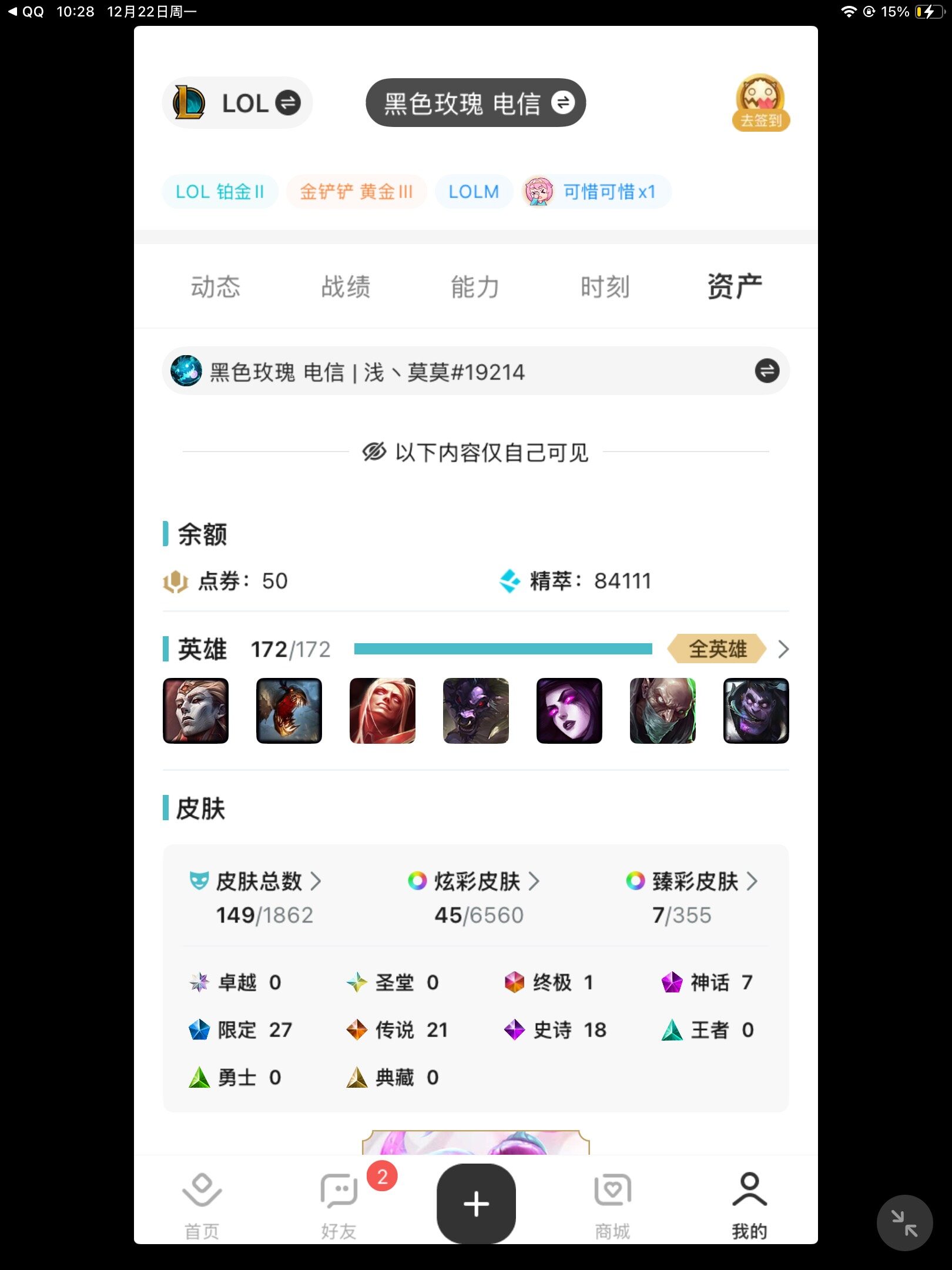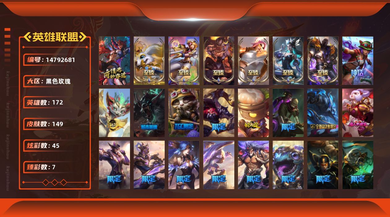 [14792681][店主推荐捡漏号]铂金段位-172英雄-149皮肤-45炫彩-1终极-7神话-27限定-21传说-18史诗