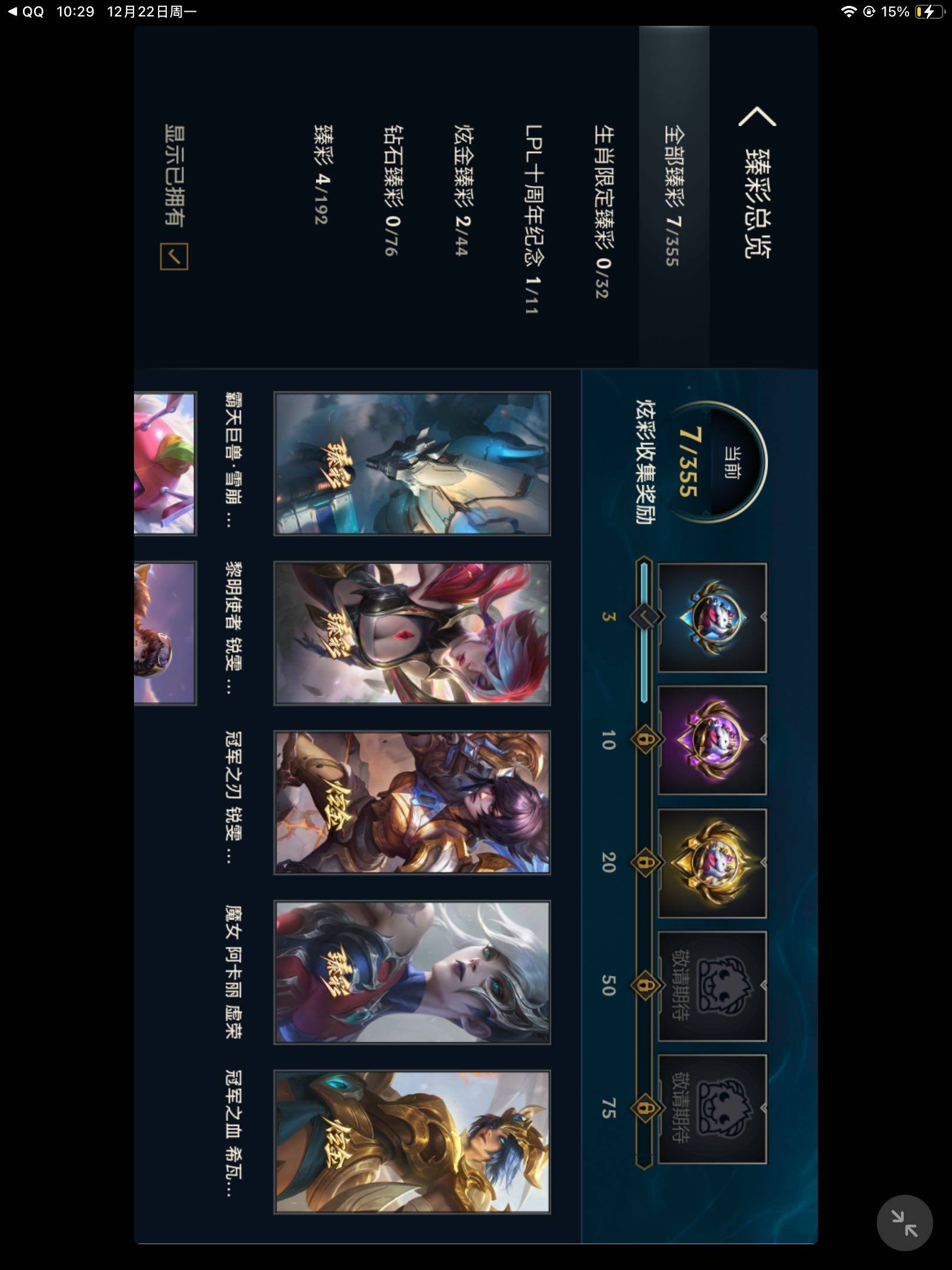 【神话皮肤】:十五周年纪念希维尔,至臻电玩女神凯特琳,至臻斗魂觉醒派克,至臻福牛守护者菲奥娜,至臻烈焰美人薇恩,至臻绒毛菲兹,至臻星之守护者辛德拉