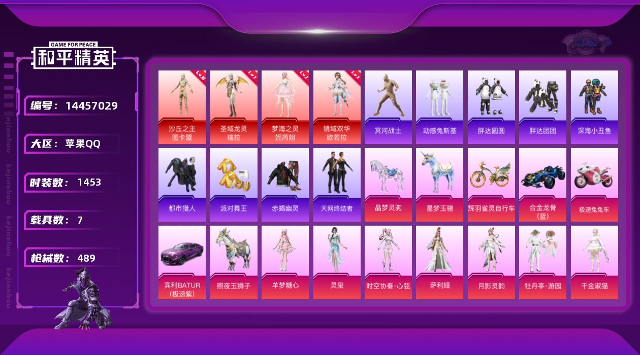 - [12429509]素材身法号/地铁满天赋【特价急出/详情看图】:安卓 手Q-2神装-11粉装-13特效枪-4载具-7粉色飞行器-8.1w热力值-13王牌印记-153套装-207枪皮【红色神装等级】:宇宙意志-塞卢姆(一级),沙丘之主-图卡盟(二级)【热门品类】:粉装-雪国幻梦,粉装-童趣迷兔,套装-浪漫天命,套装-都市猎人,套装-深海小丑鱼,套装-胖达圆圆,套装-龟仙人,套装-暗影哥特【粉色载具】:兰博基尼Estoque(银翼灰),宾利BATUR(极速紫),合金龙骨(蓝),星梦玉骢【粉色套装】:粉装-幻影战神,粉装-雪国幻梦,粉装-天禅智恒,粉装-新星烈龙,粉装-冰霜白皇,粉装-童趣迷兔,粉装-炙焰红王,粉装-暗星紫秘,粉装-天之羽翼,粉装-赤焰黑爵,角色-烟云彩露【粉色枪皮等级】:AKM-盖世英雄(七级),AKM-幽焰骑士(三级),SCAR-L-纯梦嫁纱(六级),M416-风花雪月(七级),GROZA-镜光银凌(五级),AUG-星梦奇缘(三级),M762-冷魅冰骑(七级),UMP45-量子极限(五级),UMP45-宇宙意志(三级),P90-沙丘之主(三级),Kar98K-绿意幻情(四级),Kar98K-巳巳如意(五级),PKM-江南烟雨(四级)【粉色飞行器】:天之羽翼飞行器,沙丘之主天马,镜域双华-灵镜之阶,龙翔九天飞行器,深渊漩涡飞行器,凤舞九天飞行器