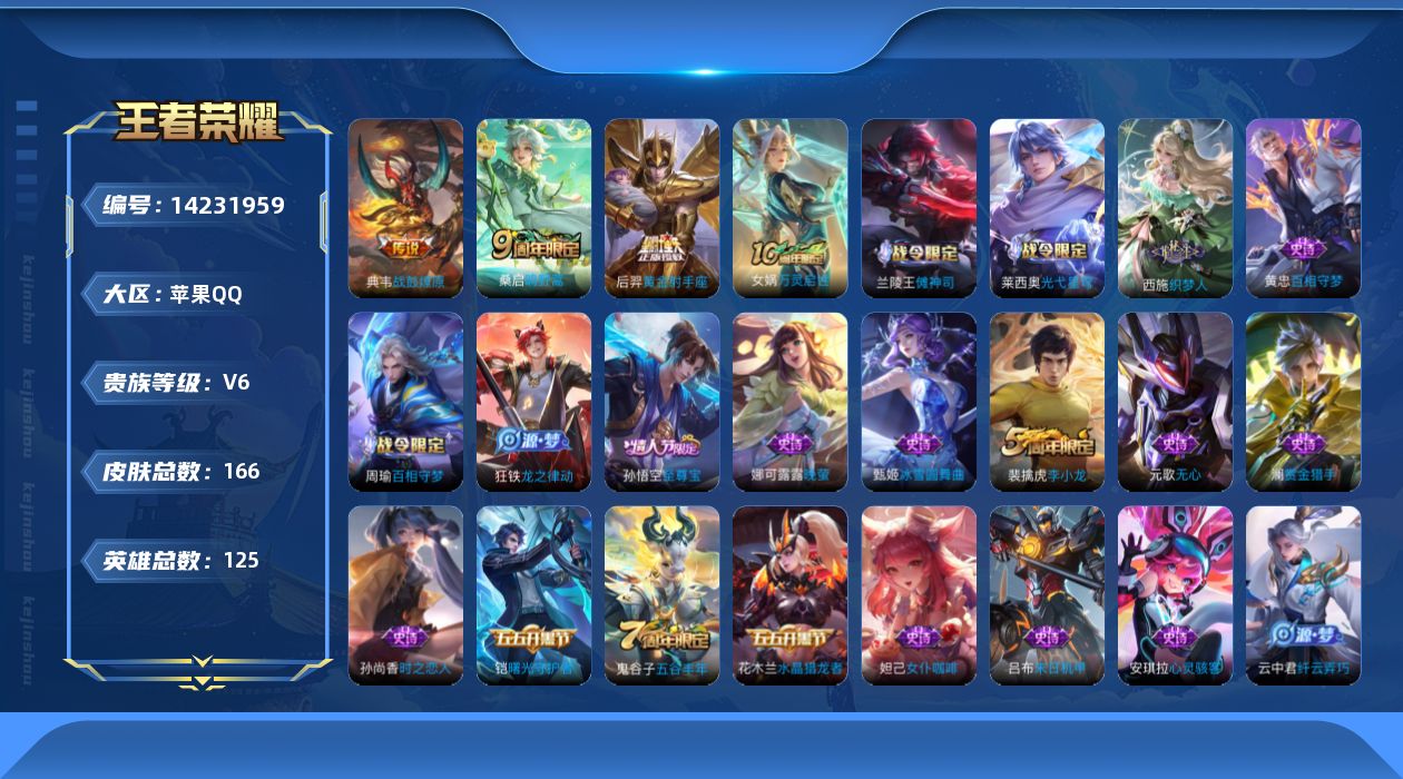 [14231959]【店主推荐捡漏号!可直接换绑】苹果Q-V6-最强王者段位-125英雄-166皮肤-4传说-46史诗