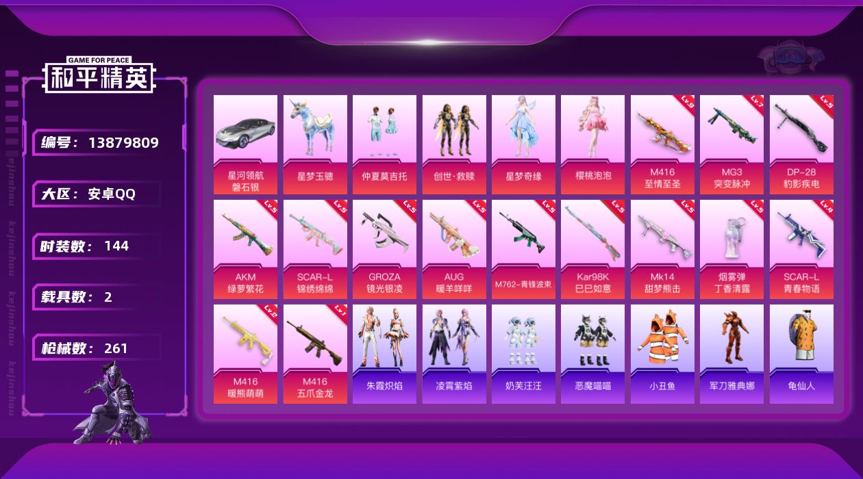- PX_2100759-??/枪械6/装备283/载具1/战备186/王牌印记11/热力值72926/五级SCAR-L-锦绣绵绵/七级M416-心之恋语/五级M416-电玩时刻/五级UMP45-量子极限/五级AKS-74U-星穹咏叹调/五级Kar98K-巳巳如意/晶梦灵驹/缤纷油彩/放客神游/星空之魅/彩虹鹿灵/蓝莓炮弹/岚岚物语/冰川幽秘/冰川红玫/呆萌星弥/莲影清波/蜜语绒猫/角色-美雪/角色-