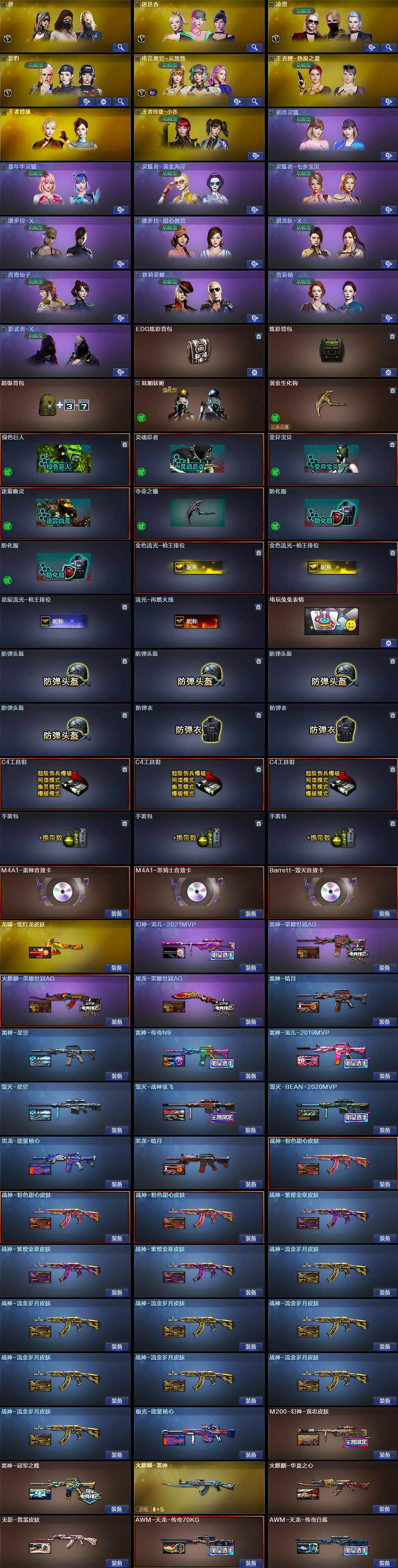 - [14166599]山东一区-18V-2王者-0炫金 【热门武器】:M4A1-黑骑士 【王者炫金武器】:王者之心 【音效卡】:M4A1-黑骑士音效卡,Barrett-毁灭音效卡 【皮肤】:火麒麟-平天大圣,毁灭耀金皮肤,毁灭-风暴,战神-紫绶金章皮肤*5,战神-流金岁月皮肤*5 【角色】:魅影,王者葵-惊若翩鸿,云海玲珑,暗夜-X,电竞少女,飞虎队-X,风暴女,嘉年华灵狐,灵狐者-黄金海岸,曼陀罗-X,萌儿,潘多拉-X,潘多拉-甜心教官,潜龙队-X,蜀雪,兔囡囡,新娜塔莎,影武者-X,游珑儿 【人偶武器】:AWM-灵狐-15周年嘉年华,迷你深渊冰龙,夺魂,迷你牛牛,闪光弹-小乔 【挑战大师】:神圣爆裂者III,激光毁灭者III-白马银枪 【英雄级武器】:M4A1-雷神,M4A1-黑骑士,黑武士-锦绣游龙,AK-47-猩红传说,AK47-B-战神,AWM-天龙,Barrett-毁灭*2,屠龙*2,龙啸,烟雾弹-竞技荣光*3,M4A1-赤狱骑士 【道具】:炫彩背包,超级背包,绿色巨人,灵魂忍者*2,迷雾幽灵*2,夺命之镰,防化服*3,金色流光-枪王排位*2,星辰流光-枪王排位,枪王排位28赛季金色流光,防弹头盔*6,防弹衣*5,C4工具钳*5,手雷包*4 【特殊枪械】:1黑骑士