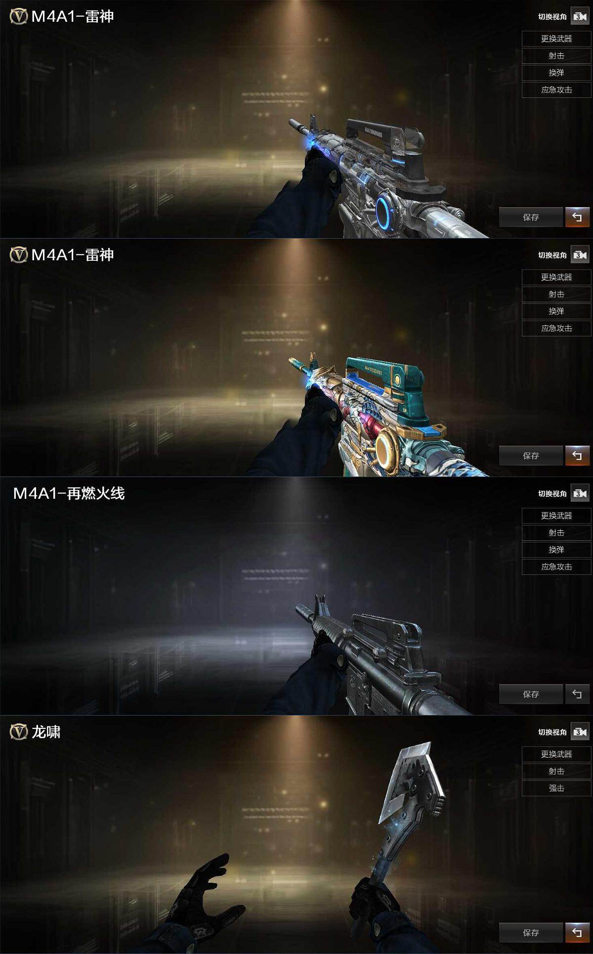 【皮肤】:雷神-星空,雷神-云海游龙皮肤,M4A1-再燃火线,轻型军用手斧-再燃火线