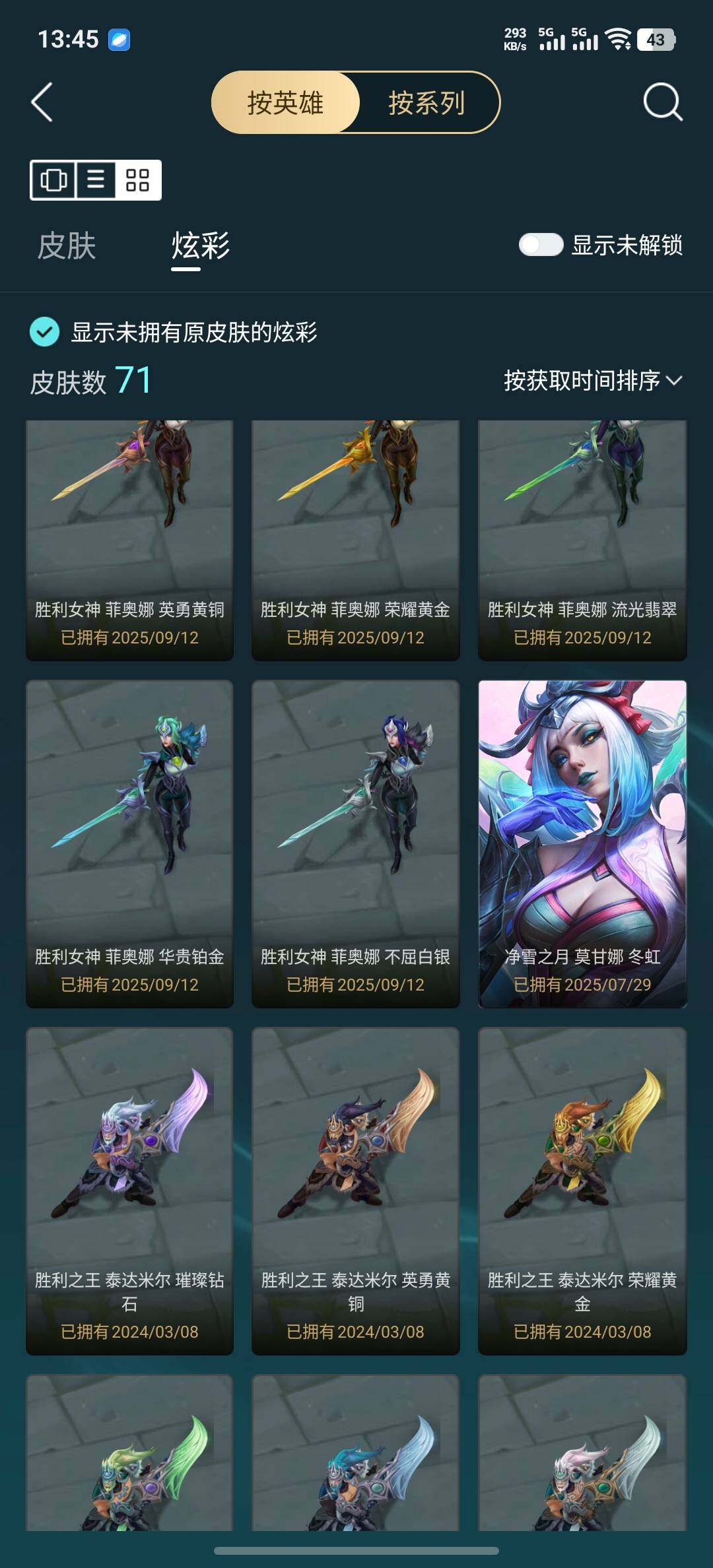 【臻彩皮肤】:无畏骑士瑟庄妮赤子初心,雾雨之刃锐雯,神龙尊者圣龙李青龙腾云起,泳池派对奥莉安娜优雅珠光鲸,源计划火菲奥娜惩戒,净雪之月莫甘娜冬虹