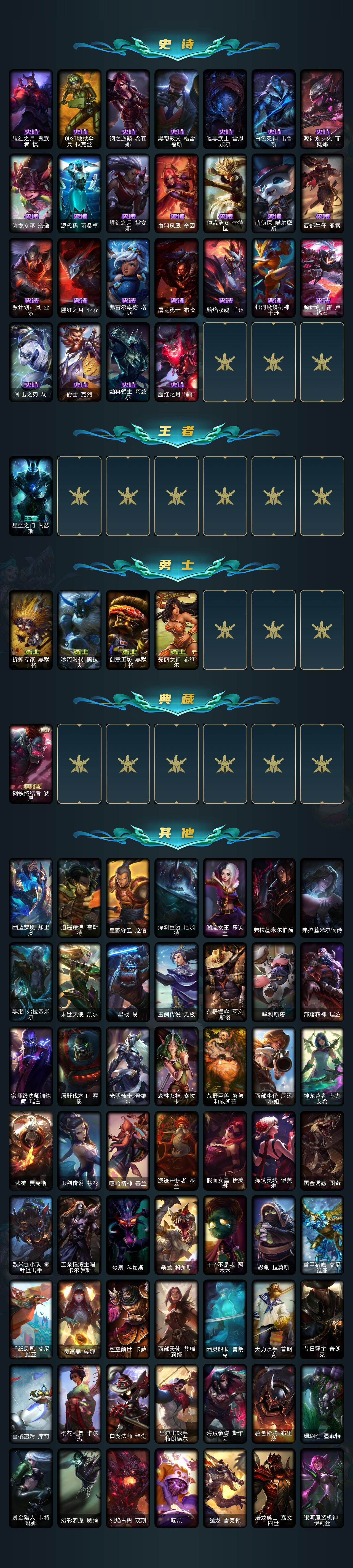 - PX_2033189-苹果Q 【包人脸】 英雄数量:124 皮肤数量:285 贵族等级:贵族V8 传说数量:0 【星传说 幽冥之眼】无双限定1 荣耀典藏1 传说品质20 史诗品质68碎月剑心 九霄神辉 凤求凰 仲夏夜之梦 一念神魔 云鹰飞将 武圣 炽阳神光 神器狴犴令 遇见神鼓 启明星使 补天 地狱之眼 时之恋人男 胖达荣荣 超时空战士男 鸣野蒿 夜礼服假面 逐花归海 乘龙淬吴钩 琥珀纪元男 琥珀