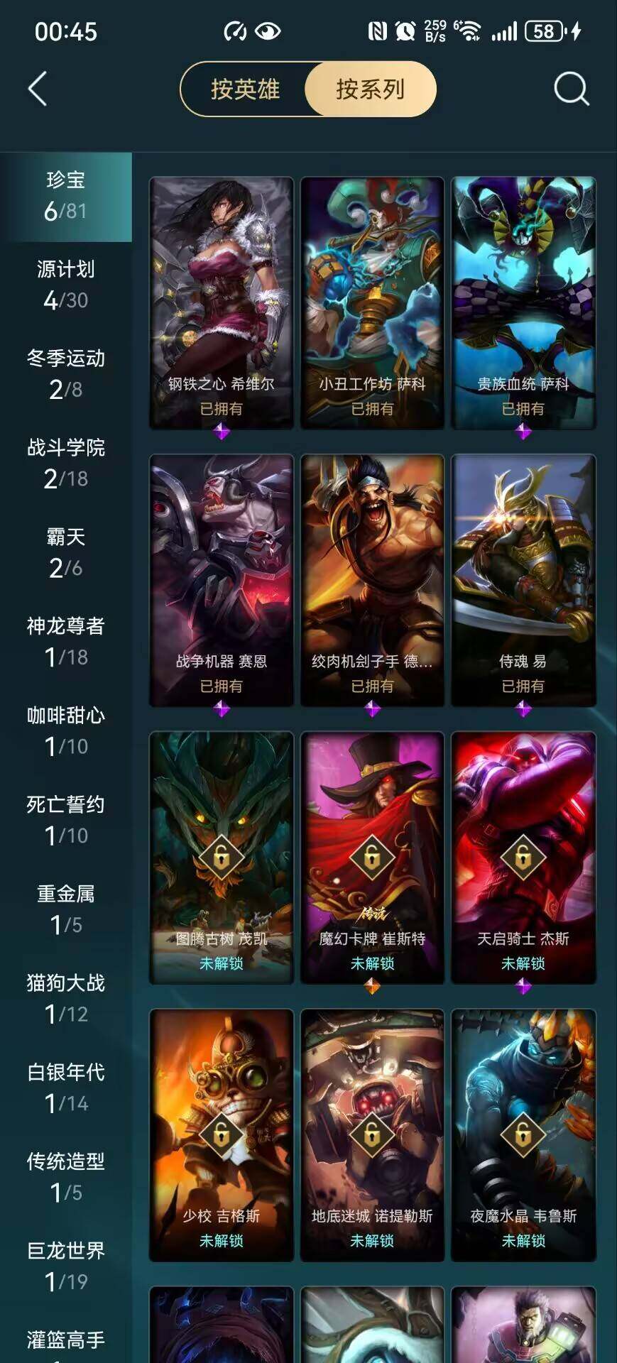 【史诗皮肤】:侍魂易,战争机器赛恩,钢铁之心希维尔,贵族血统萨科,特种部队普朗克,穿着正装的恶魔维迦,至高之拳李青,屠龙勇士薇恩,苍穹之光薇恩,黑帮教父格雷福斯,绞肉机刽子手德莱文,沙之守护卡兹克,五星大厨塔姆,霸天剑魔亚托克斯