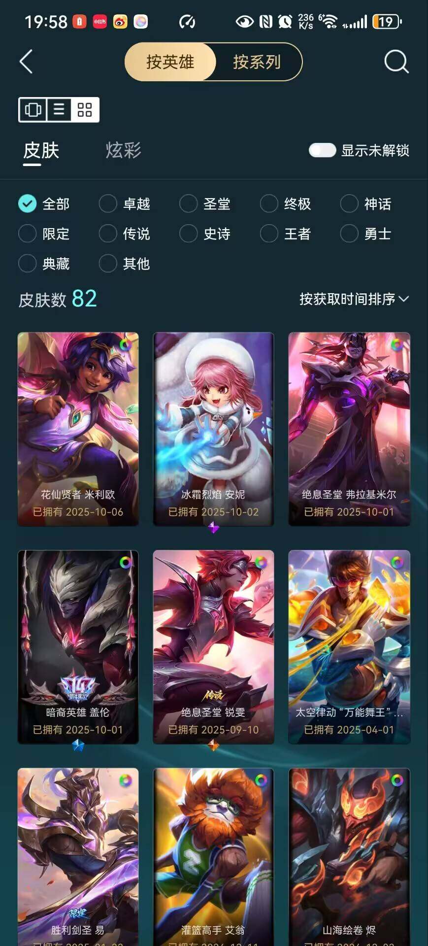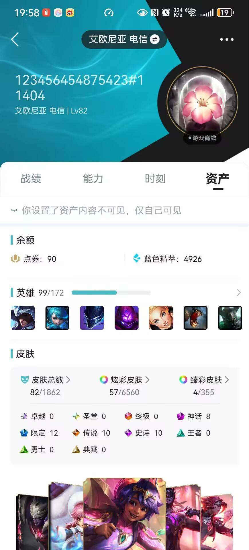 [14833018]可二次【店主推荐捡漏号!可直接换绑】白银段位-99英雄-82皮肤-57炫彩-0终极-8神话-12限定-10传说-10史诗