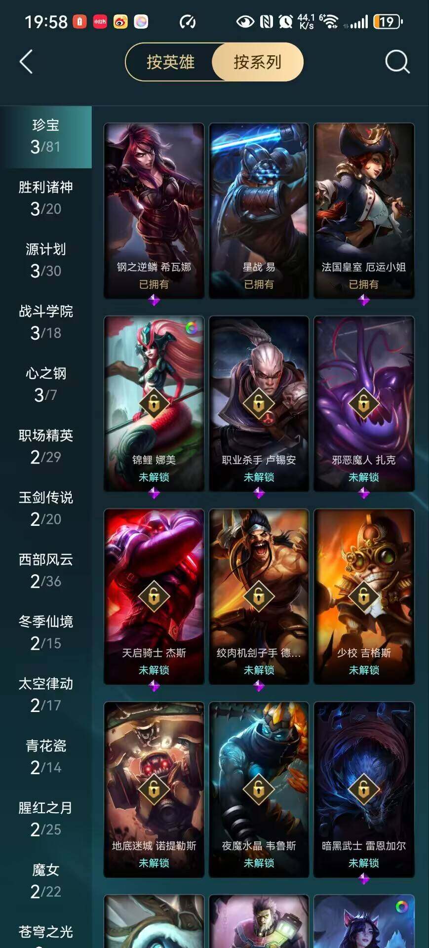 【史诗皮肤】:冰霜烈焰安妮,腥红之月崔斯特,摄魂男爵弗拉基米尔,法国皇室厄运小姐,苍穹之光薇恩,钢之逆鳞希瓦娜,海牛猎手菲兹,虚空海灵菲兹,暗黑女武神黛安娜,源计划自由艾克
