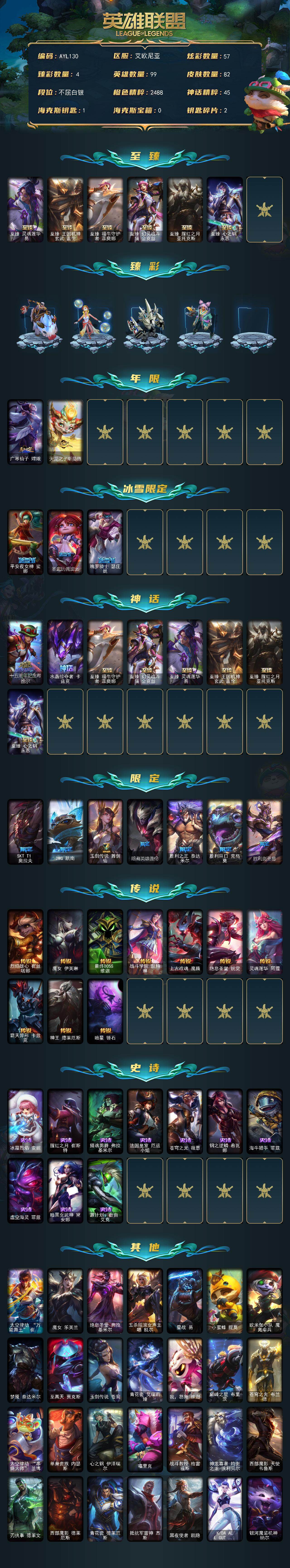 - PX_2095049-实名: 可修改 贵族等级: V4 英雄数: 91 皮肤数: 59 传说皮: 地狱火 限定皮: 李小龙,白虎志,大圣娶亲