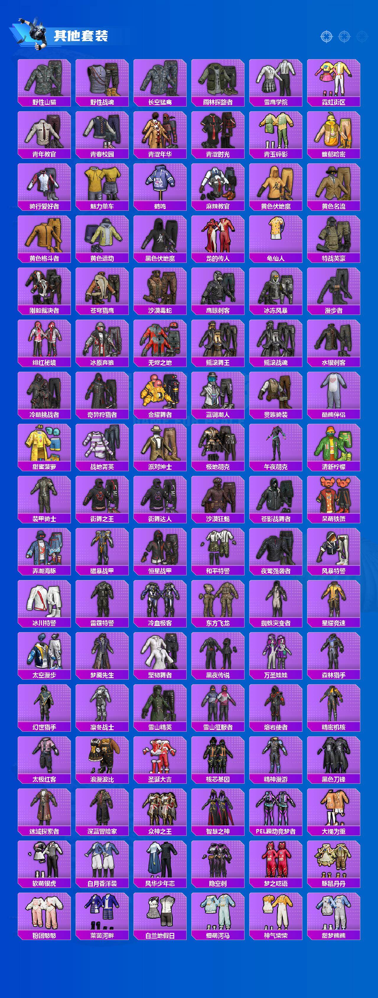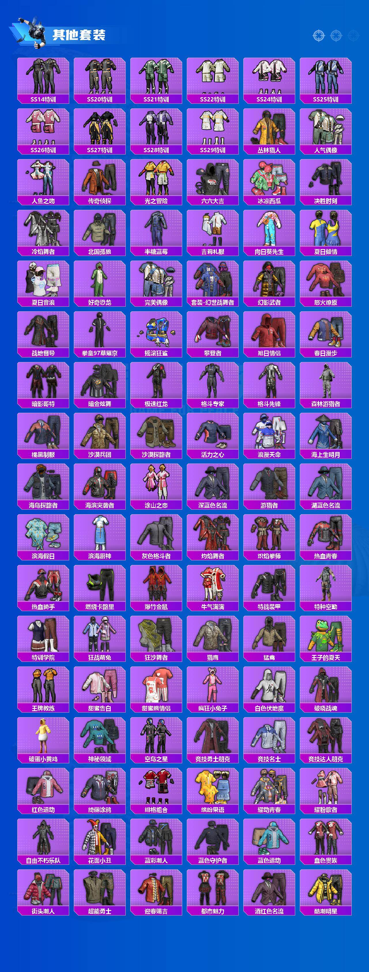 【稀有套装】:套装-龟仙人,套装-雏菊兔兔,套装-萝兰蝴蝶,套装-先驱飞行员,套装-糖糖葫芦,套装-青团波波,套装-棉花软糖,套装-粉恋花,套装-紫幽梦,套装-蓝冰羽,套装-星渊小夜曲,套装-引力深渊,套装-极速光影,套装-彩虹兔,套装-云朵鹅,套装-雪绒豹,套装-朱霞炽焰,套装-凌霄紫焰,套装-擎苍青焰,玩偶服-懒羊羊