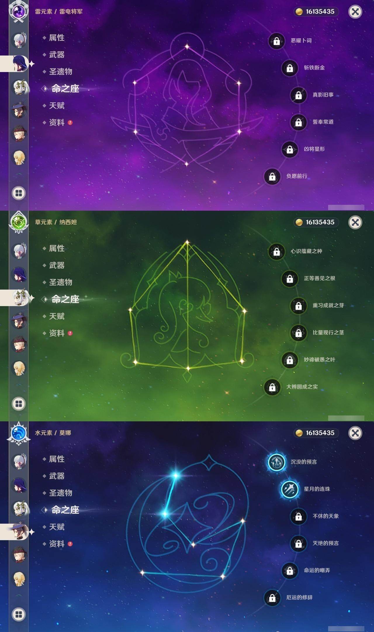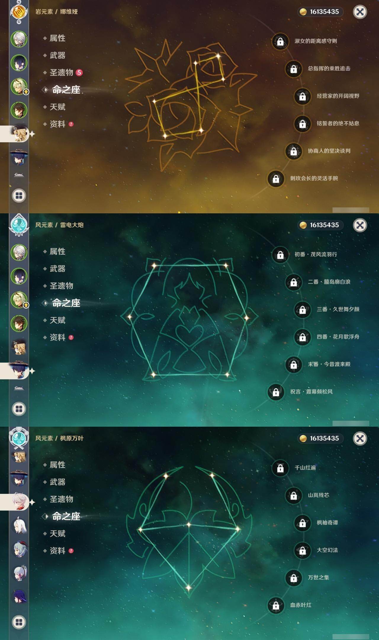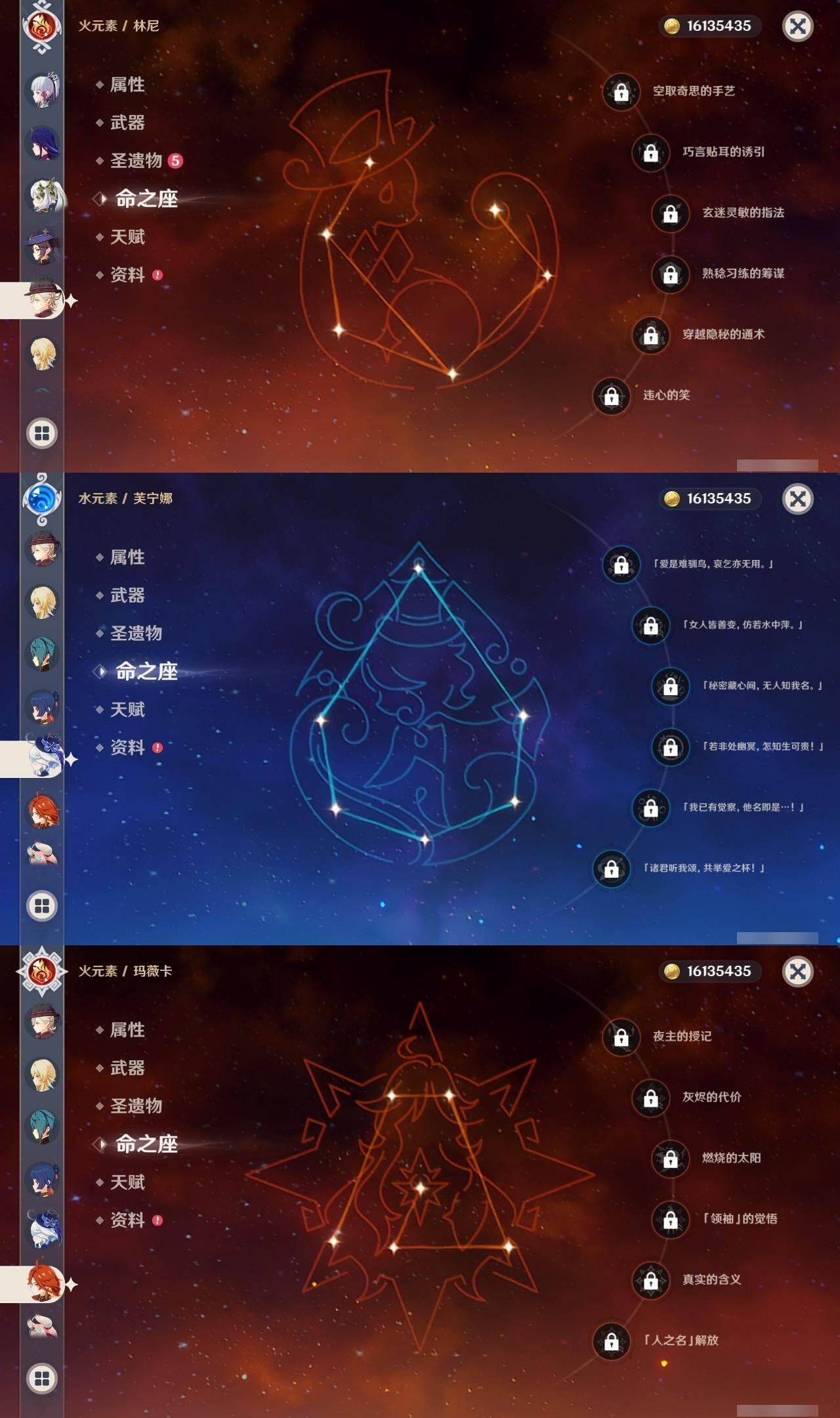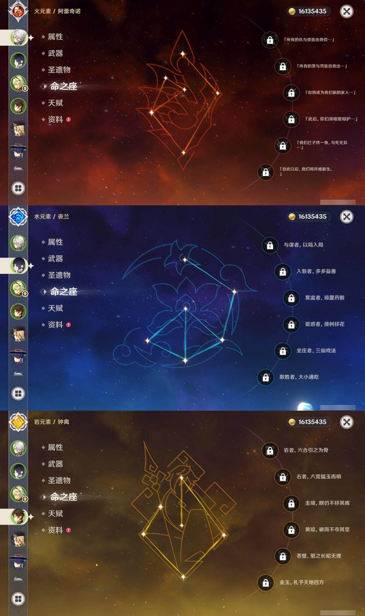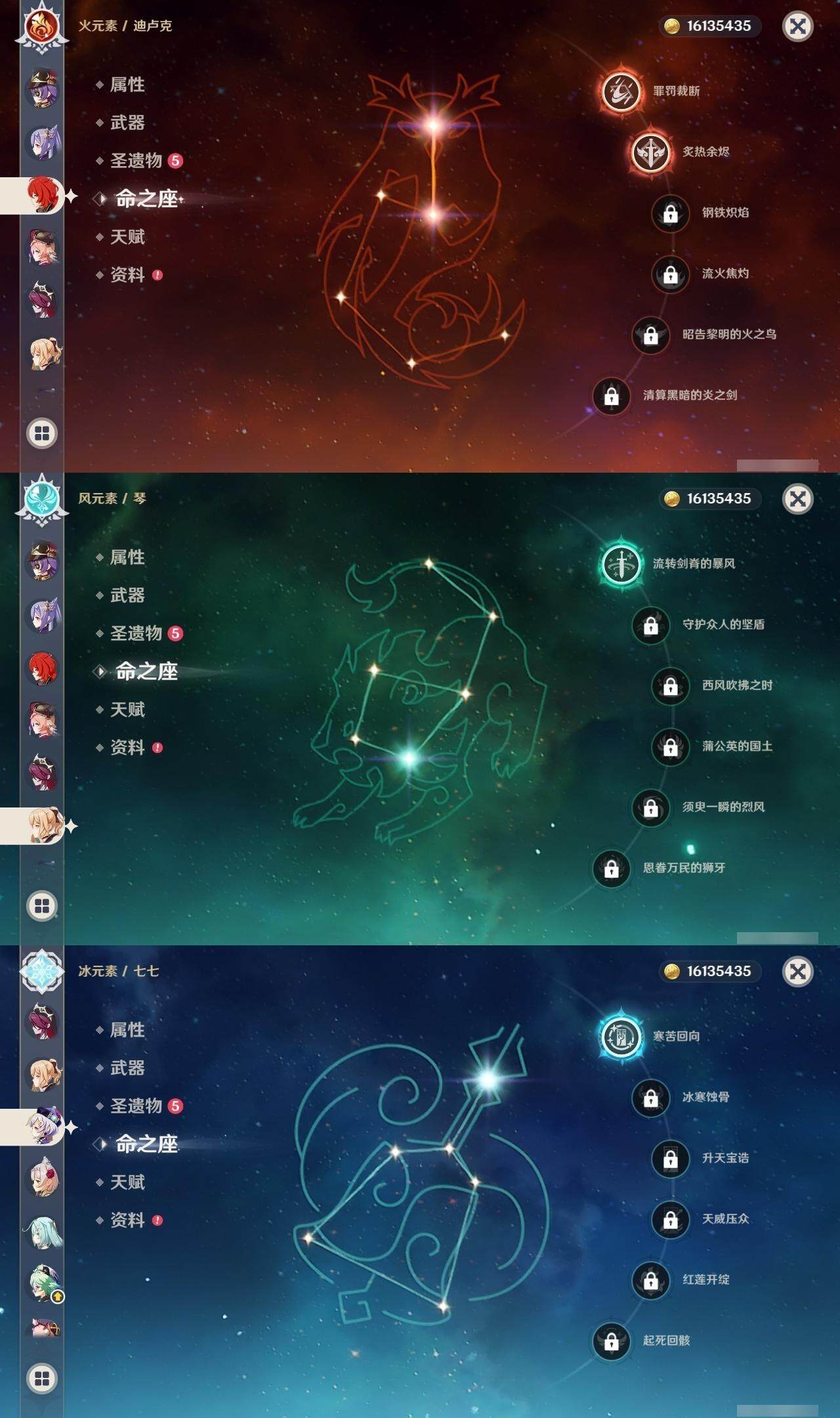 0命阿蕾奇诺,0命娜维娅,0命芙宁娜,0命林尼,0命迪希雅,0命流浪者,0命纳西妲,0命提纳里,0命夜兰,0命申鹤,0命雷电将军,0命枫原万叶,0命神里绫华,0命钟离,0命甘雨,3命刻晴,1命七七,1命琴,2命莫娜,2命迪卢克,0命玛薇卡,0命梦见月瑞希,1命瓦雷莎,0命爱可菲,精1金流监督,精1最初的大魔术,精1裁叶萃光,精1息灾,精1终末嗟叹之诗,精1无工之剑,精1护摩之杖,精2和璞鸢,精2天空之脊,精1天空之翼,精1阿莫斯之弓,精1天空之刃,精1天空之傲