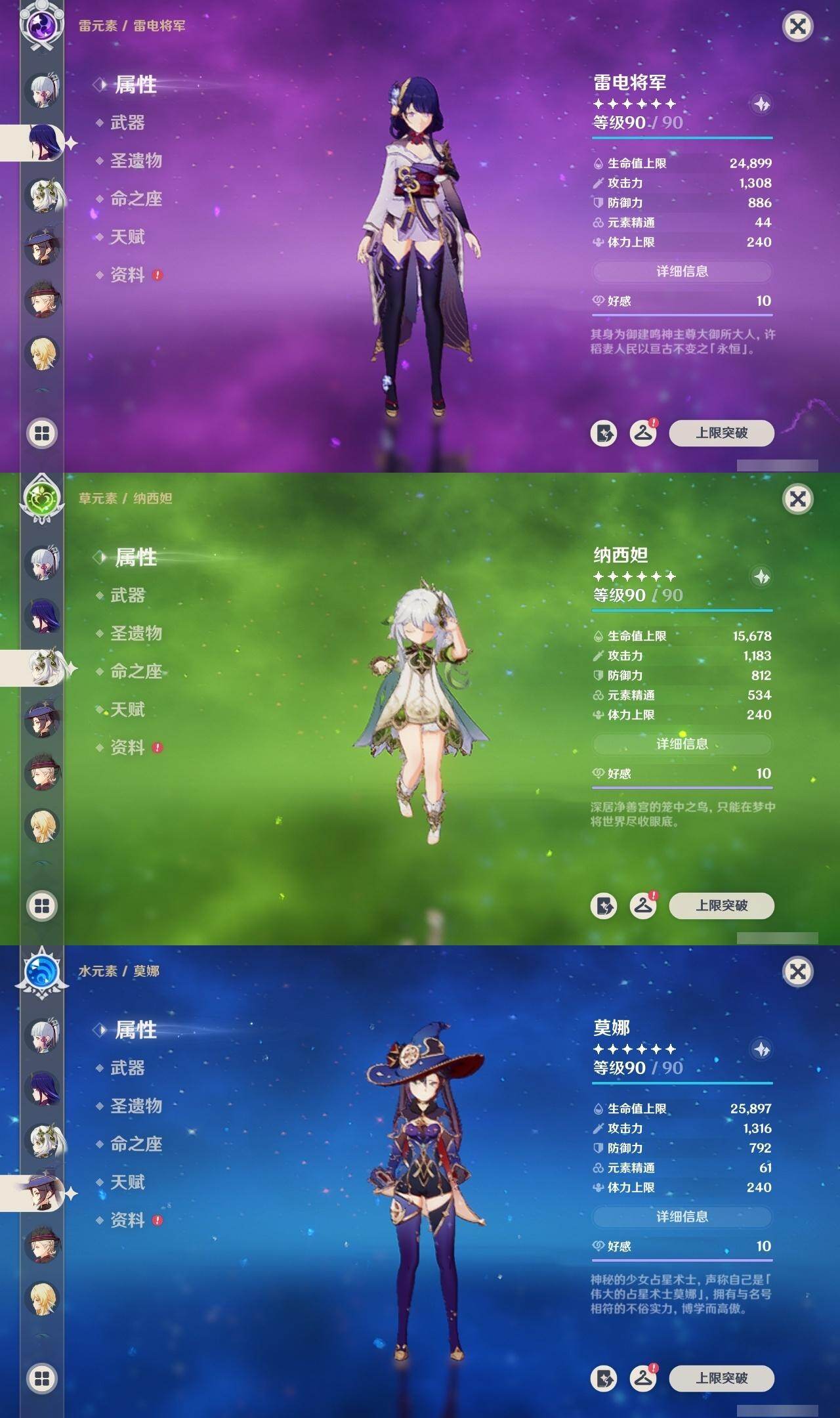 钟离,枫原万叶,申鹤,甘雨,神里凌华,雷电将军,莫娜,刻晴,迪卢克,琴,七七