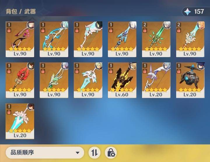 - [14736939]60级/62黄/男主/22个五星角色/15个五星武器 0命闲云,0命娜维娅,1命芙宁娜,0命迪希雅,0命艾尔海森,0命流浪者,2命纳西妲,0命提纳里,1命夜兰,3命雷电将军,2命枫原万叶,0命神里绫华,0命钟离,1命胡桃,1命达达利亚,3命刻晴,2命七七,0命琴,2命莫娜,满命迪卢克,0命基尼奇,0命希诺宁,精1鹤鸣余音,精1裁断,精1图莱杜拉的回忆,精1若水,精1薙草之稻光,精1飞雷之弦振,精2护摩之杖,精1四风原典,精1天空之脊,精1阿莫斯之弓,精1斫峰之刃,精1天空之卷,精1风鹰剑