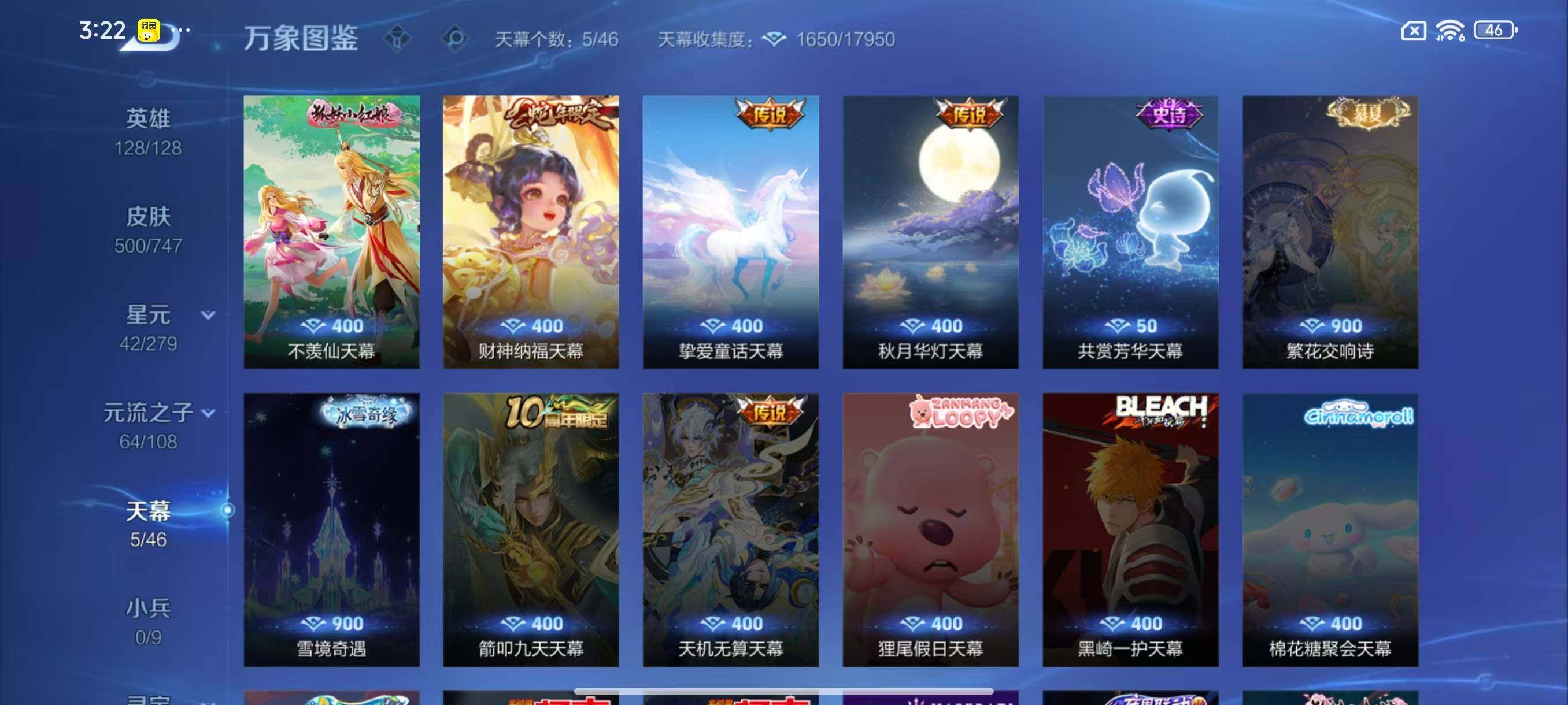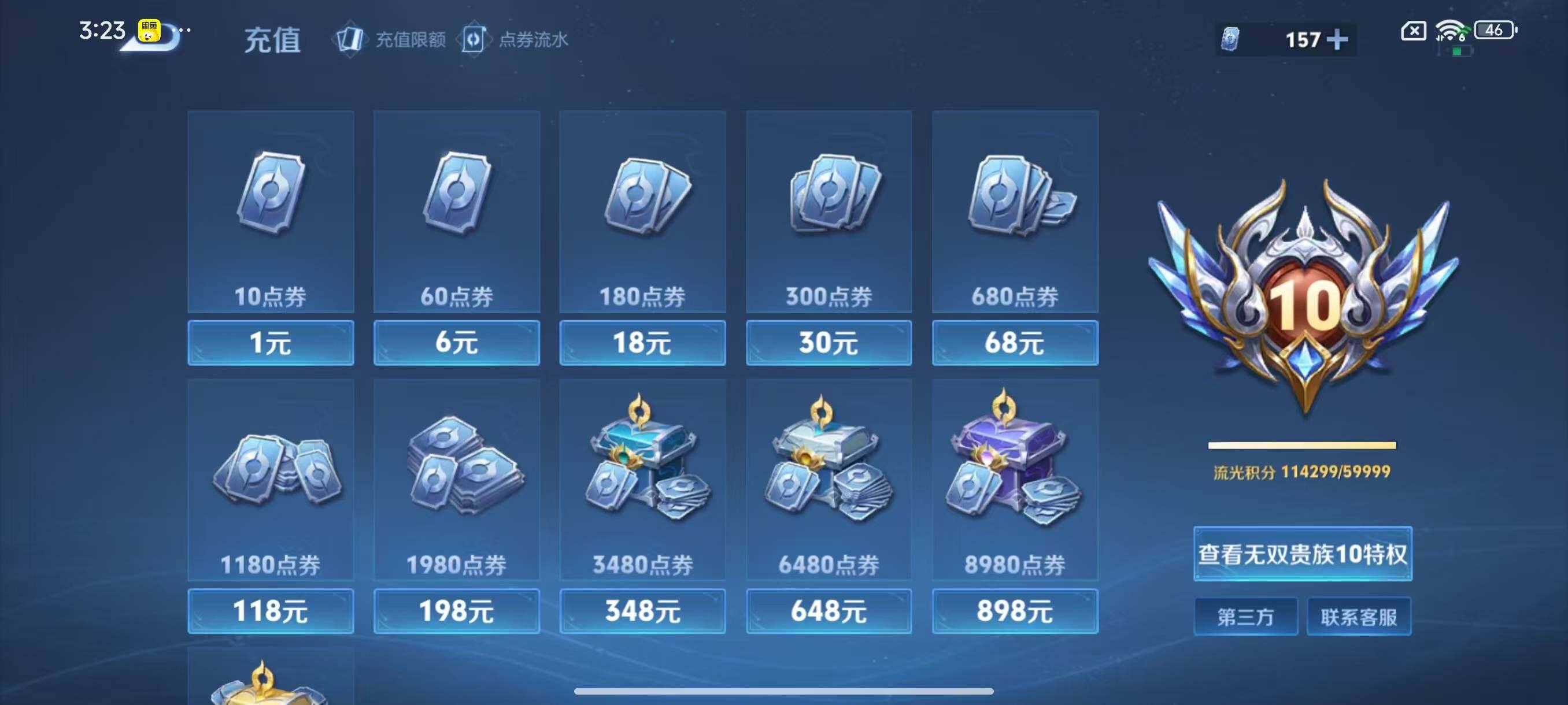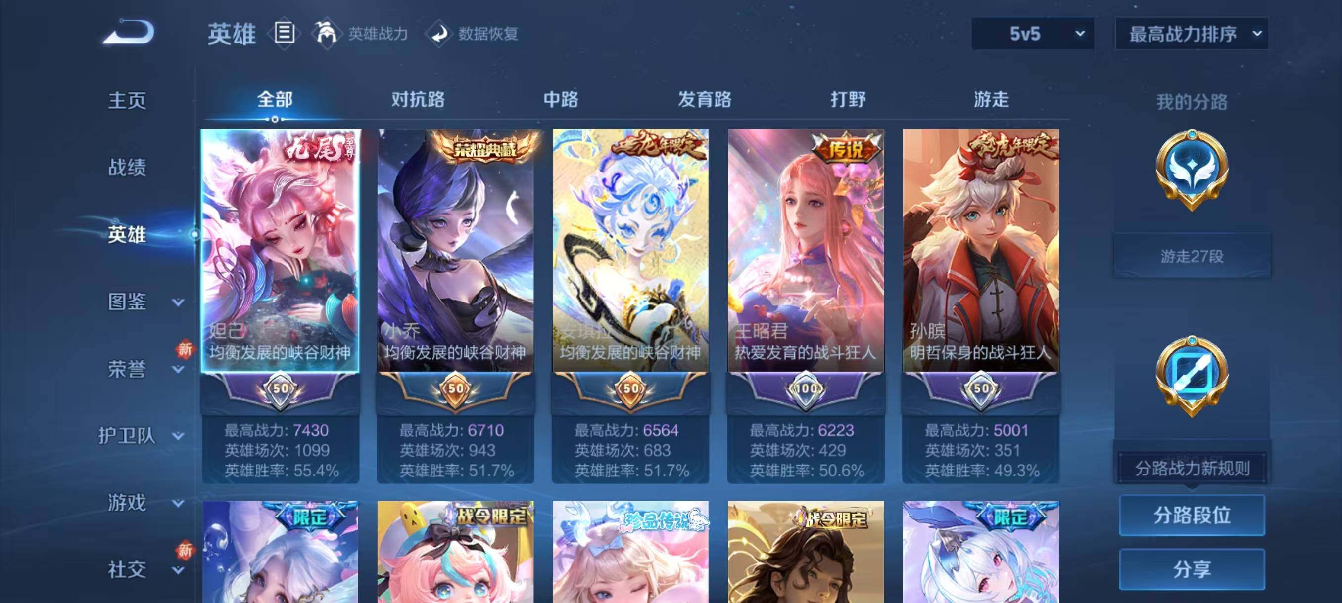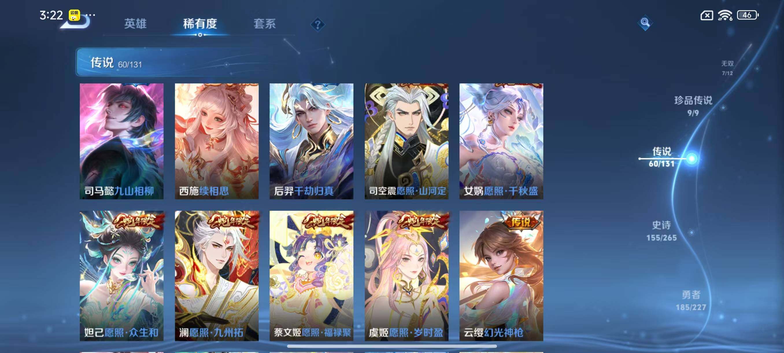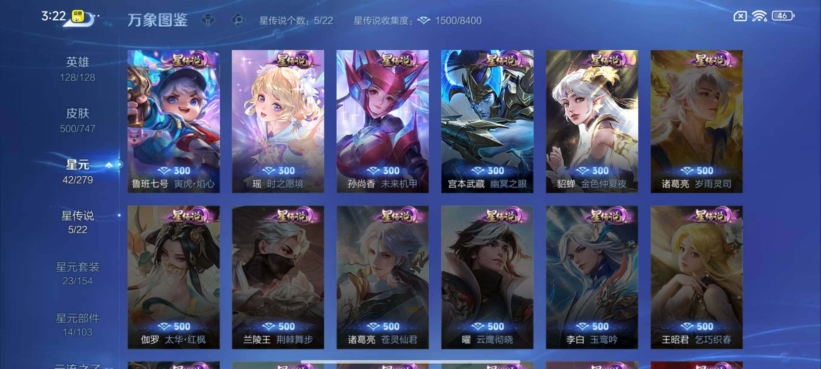 [14844339]安卓Q-V11-500皮肤-3典藏皮肤-1典藏英雄-1珍品无双-7无双-9珍品传说-60传说-155史诗