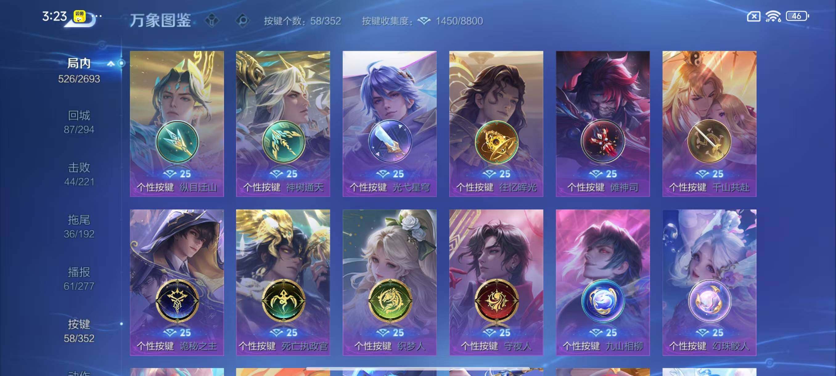 明世隐疑决卦,老夫子醍醐杖,鬼谷子原初探秘者,狄仁杰万华元夜,程咬金演武夺筹,钟馗驱傩正仪,苏烈千军破阵,吕布猎兽之王,女娲朔望之晖,鲁班七号狮舞东方,马可波罗暗影游猎,元歌云间偶戏,弈星混沌棋,达摩沙漠行僧,兰陵王金庭之子,沈梦溪大漠名商,李元芳云中旅人,桑启海盐诗旅,裴擒虎擒涛扼浪,鲁班大师探海日志,张良古海寻踪,项羽苍威无极,镜青焰无极