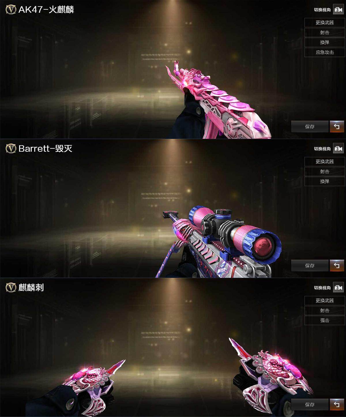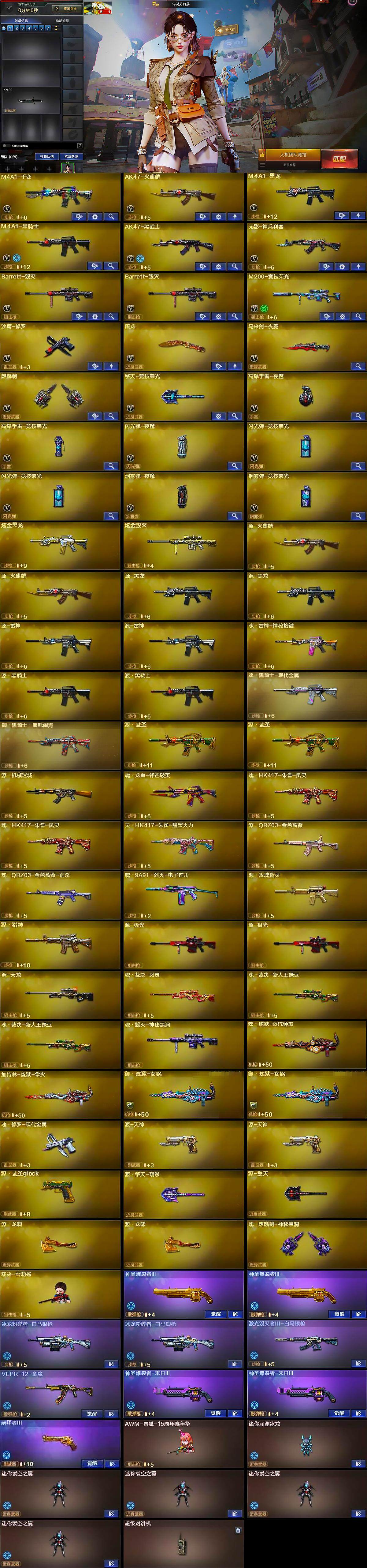 【英雄级武器】:M4A1-千变,AK47-火麒麟,M4A1-黑龙,M4A1-黑骑士,AK47-黑武士,无影-神兵利器,Barrett-毁灭*2,M200-竞技荣光,沙鹰-修罗,屠龙,马来剑-夜魔,麒麟刺,擎天-竞技荣光,高爆手雷-夜魔,高爆手雷-竞技荣光,闪光弹-夜魔,闪光弹-竞技荣光*2,烟雾弹-夜魔,烟雾弹-竞技荣光