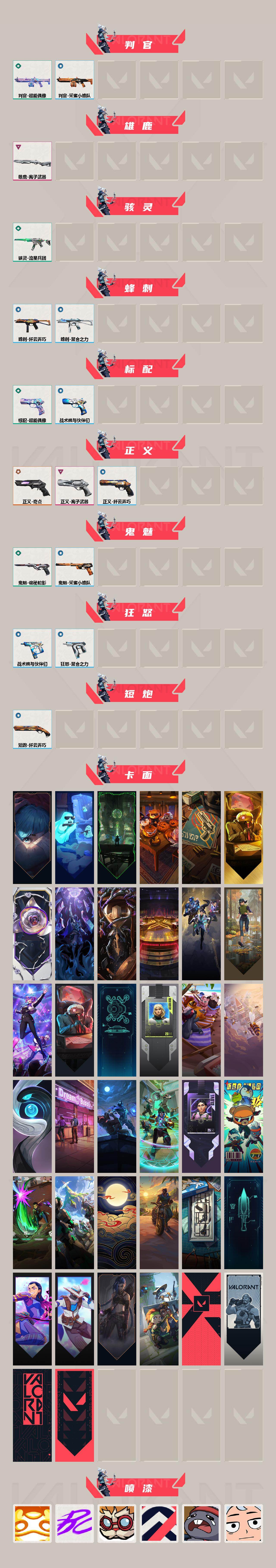 【卡面】:《双城之战》拥抱 卡面,精灵大战 卡面,欢迎来到底城 卡面,南瓜盛典 卡面,正义的化身 卡面,终章:生意人麦宝 卡面,铁之华 卡面,失而复得 卡面,时间到 卡面,最高舞台 卡面,复活专家 卡面,归乡 // 蝰蛇 卡面,超能偶像 卡面,生意人麦宝 卡面,声感陷阱设计图 卡面,钢锁工牌 卡面,战术小伙伴的夏日 卡面,采蜜小蜂队 卡面,聚合之力 卡面,梦幻奶茶 卡面,失控边缘 卡面,哨卫者之领域 卡面,暮蝶工牌 卡面,战术熊与伙伴们 卡面,源能反应 卡面,流星兵团 卡面,纤云弄巧 卡面,暂别喧嚣 卡面,打造专属狂徒 卡面,零点嗅探设计图 卡面,无畏契约GO!第一卷:芮娜 卡面,无畏契约GO!第一卷:零 卡面,《双城之战》金克丝 卡面,别冒尖 卡面,代号红色 卡面,新兵报到 卡面,V契约 卡面,无畏契约 卡面