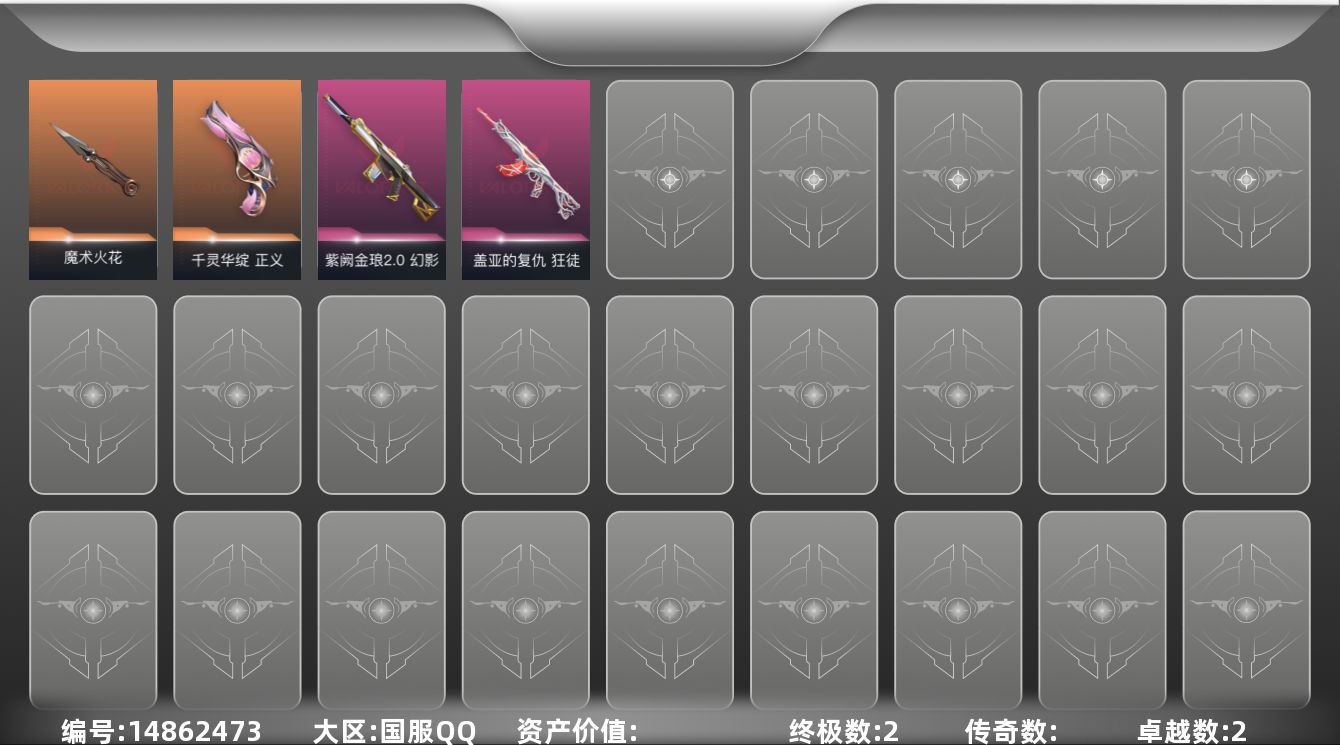 [14862473]【英雄】:炼狱,暮蝶,壹决,捷风,不死鸟,贤者,猎枭,芮娜 【近战武器】:近战武器-魔术火花,近战武器-魔术火花 【狂徒】:狂徒-盖亚的复仇 【幻影】:幻影-紫阙金琅//2.0 【正义】:正义-千灵华绽 【卡面】:南瓜盛典 卡面,代号红色 卡面,新兵报到 卡面,V契约 卡面,无畏契约 卡面 【喷漆】:蛋糕还是爆能器? 喷漆,胜利属于无畏契约 喷漆,GLHF 喷漆,无畏契约 喷漆 【挂饰】:无畏契约 纪念币 挂饰