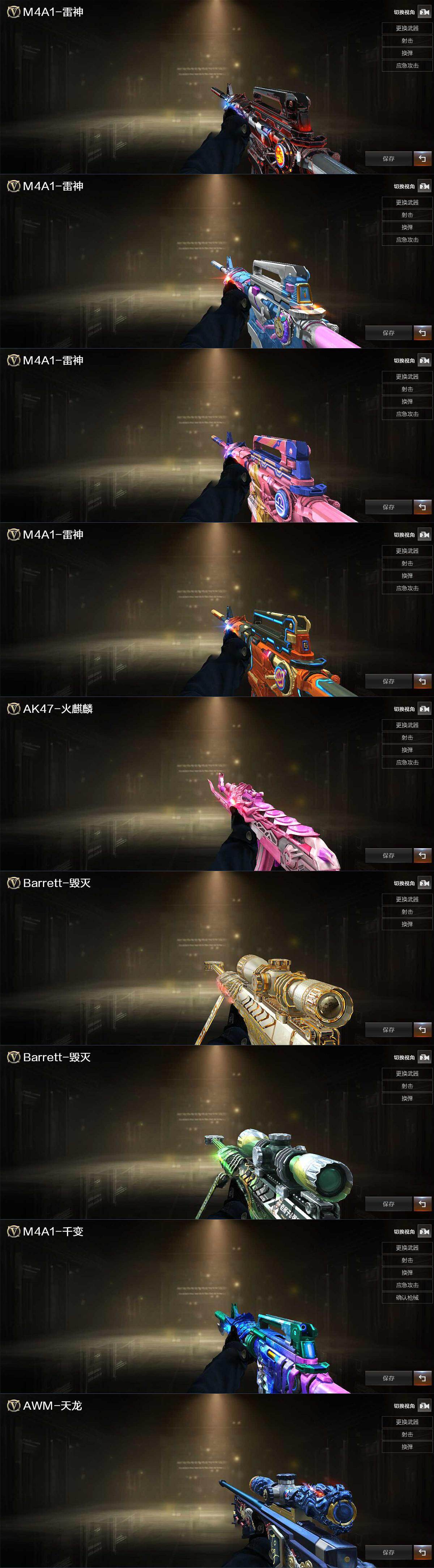 【音效卡】:M4A1-雷神音效卡,Barrett-毁灭音效卡,Barrett-极光音效卡