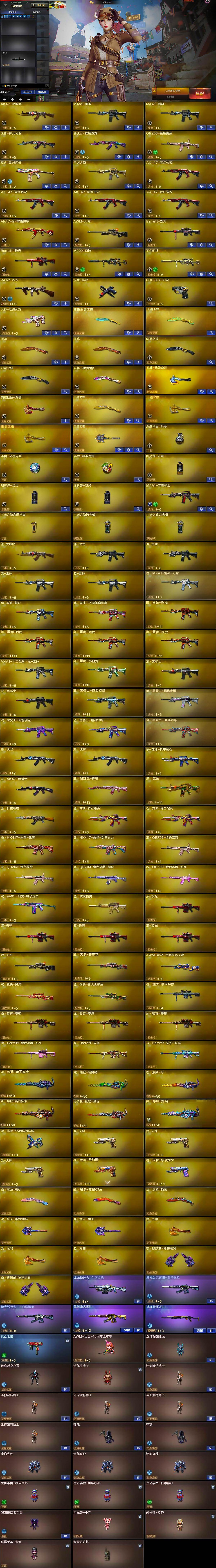 【英雄级武器】:AK47-火麒麟,M4A1-雷神*2,无影-神兵利器,黑武士-锦绣游龙,QBZ03-金色蔷薇,烈火-动感闪耀,王者之魄-觉醒版,AK-47-猩红传说*4,AK47-B-常胜将军,AWM-天龙,Barrett-毁灭,Barrett-极光,M200-幻神,王者幻神-觉醒版,汤姆逊-烈龙,沙鹰-修罗,COP 357-幻灵,天神-动感闪耀,屠龙*2,幻灵之锋*2,屠龙-动感闪耀,龙啸-热带奇洋,荣耀世冠-龙啸,王者之锋-觉醒版,王者之啸-觉醒版*2,王者之击-觉醒版,高爆手雷-幻灵,手雷-动感闪耀,手雷-热带奇洋,闪光弹-幻灵,烟雾弹-幻灵*2,M4A1-赤狱骑士