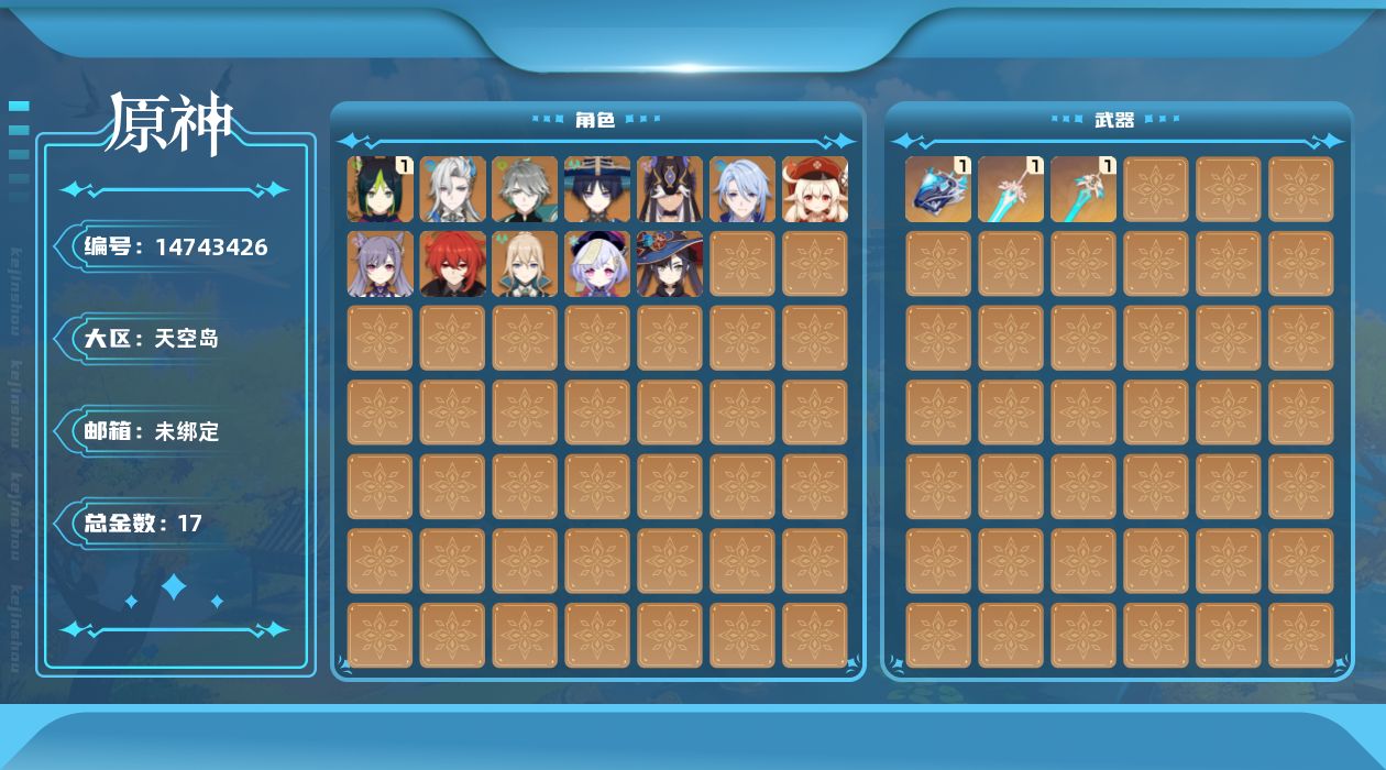 [14743426]55级/17黄/女主/12个五星角色/4个五星武器