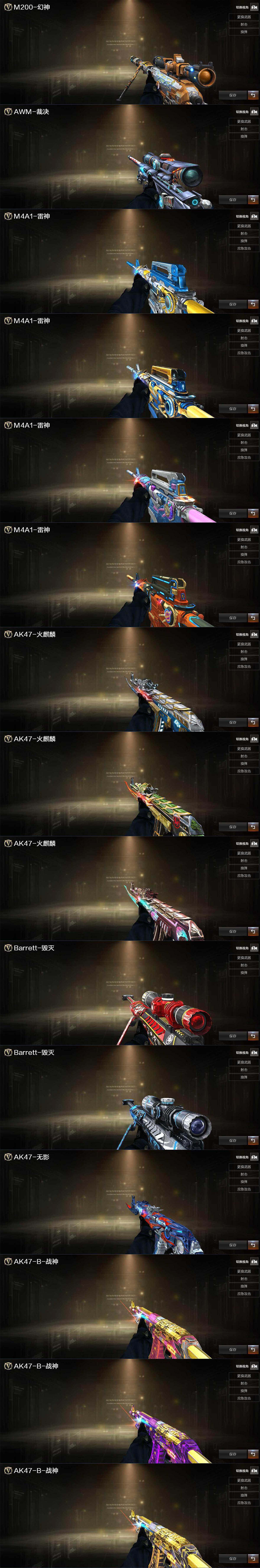 【热门武器】:M200-幻神,金色蔷薇-古蛇迷踪,修罗-古蛇迷踪,白虎-电玩蓝兔,M4A1-黑骑士