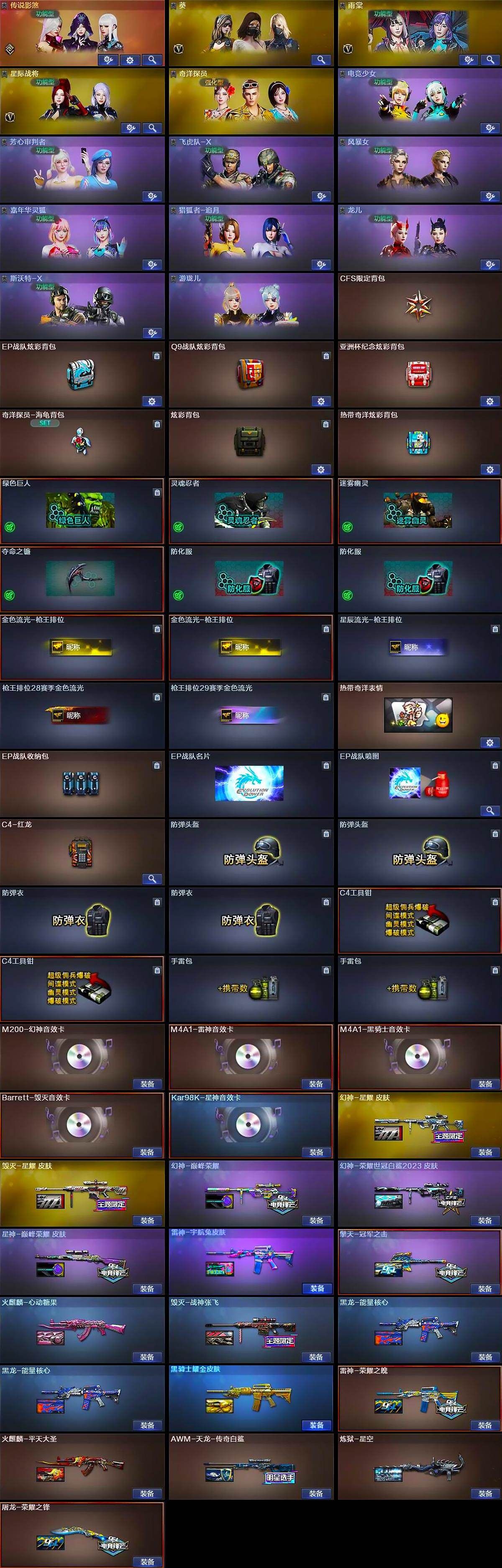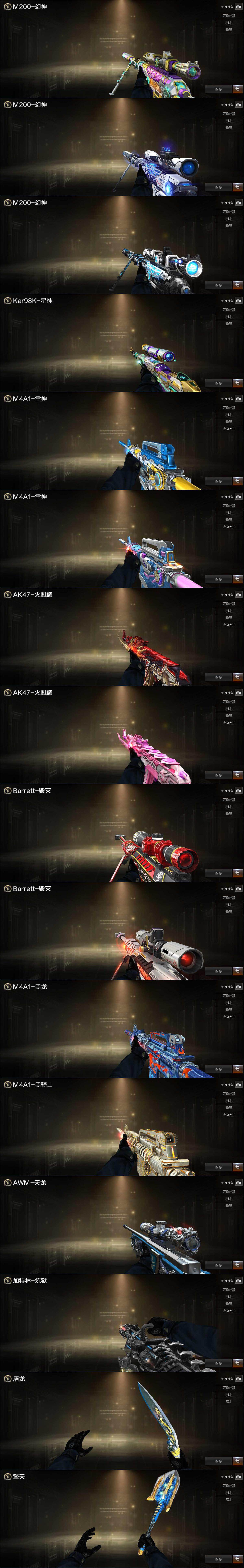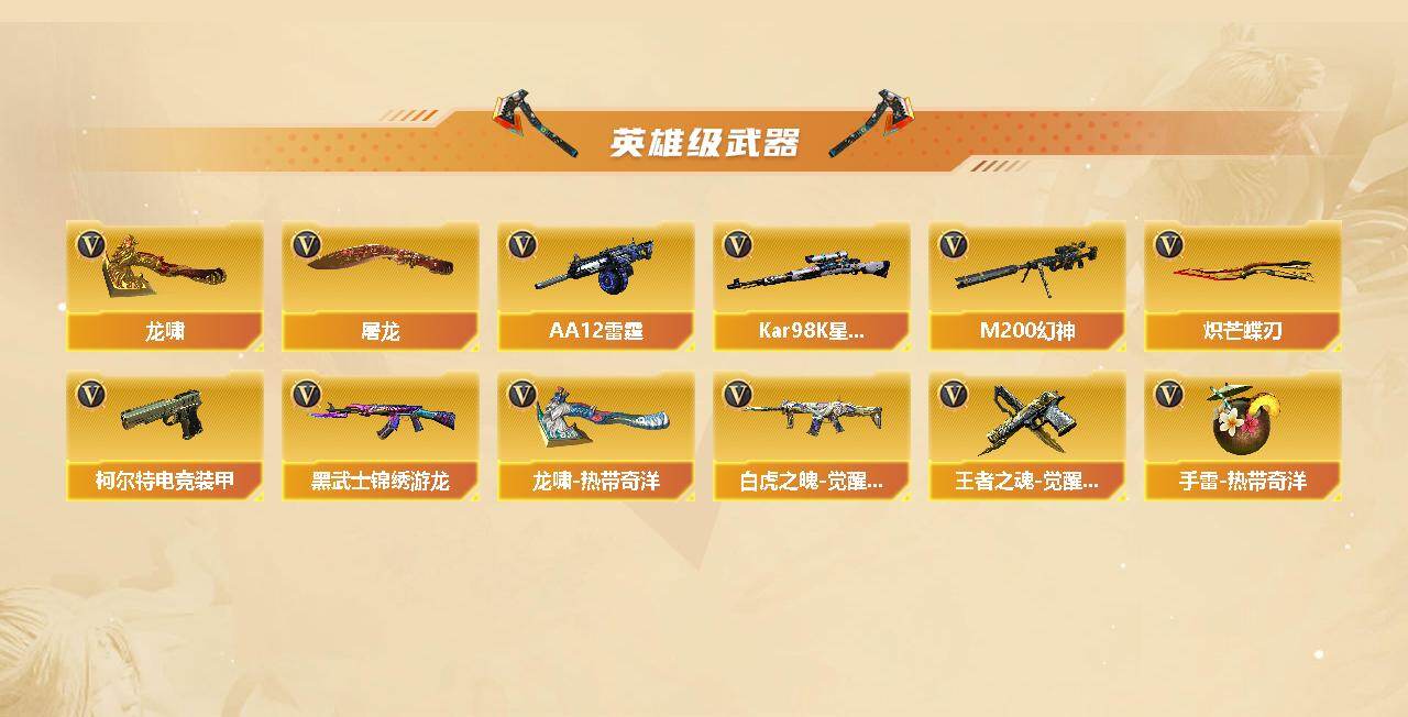 【热门武器】:传说幽瞳,传说破晓,传说幽冥,QBZ03-金色蔷薇,M200-幻神,Kar98K-星神,M4A1-黑骑士,USP-钞能力灵狐,COP-白鲨,炽芒蝶刃*2