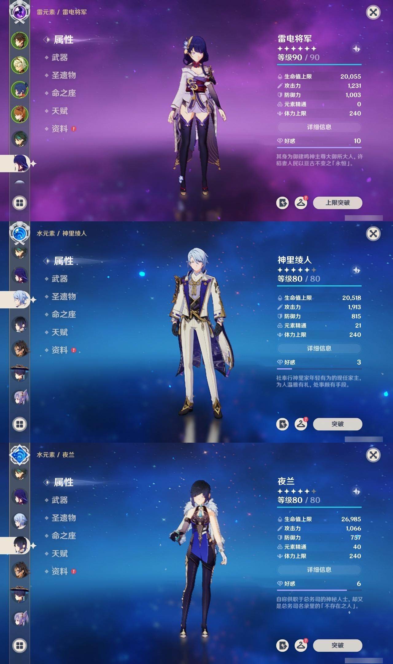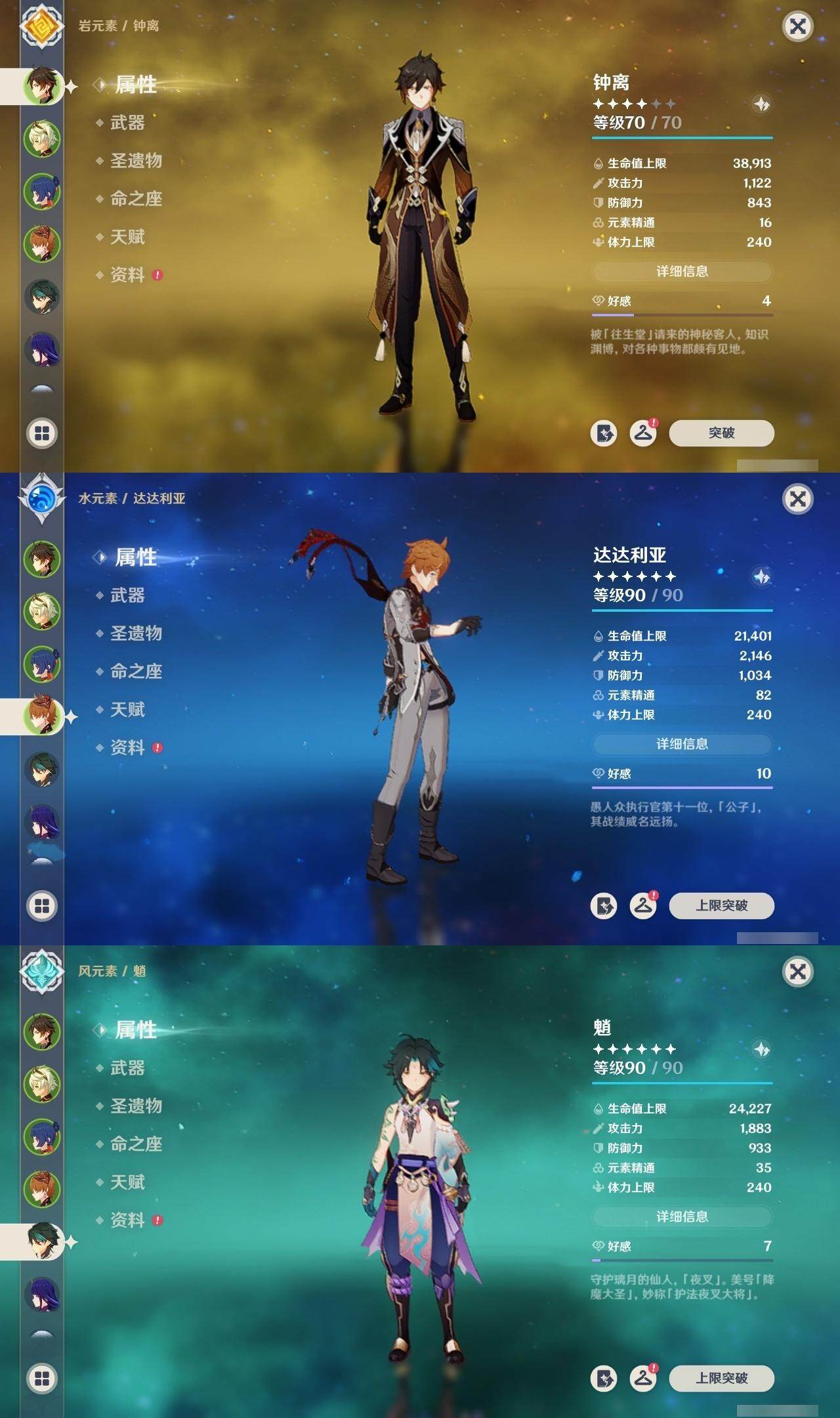 钟离,达达利亚,魈,雷电将军,刻晴,七七,八重神子,琴,神里凌华,莫娜
