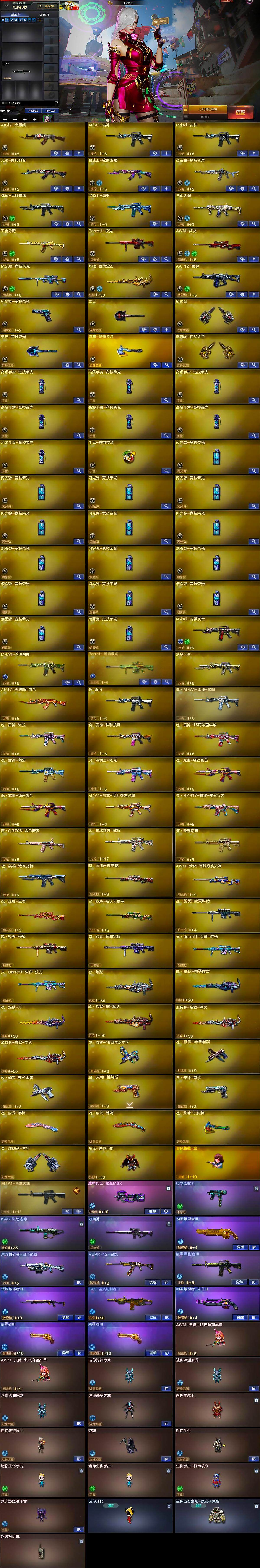 - [15584464]【店主推荐捡漏号!可直接换绑】总资产497m 哈伏币-473m流动资产-60烽火等级-钻石-50战场等级-军士长 【干员外观】:蛊-能天使午夜邮差,深蓝-不破誓约,红狼-电锯惊魂 【近战皮肤】:近战-黑鹰 【典藏外观】:Vector冲锋枪-潜袭者,PTR-32突击步枪-黑潮,PKM通用机枪-黑潮,SR-25射手步枪-雪地迷彩,M700狙击步枪-纯白涂装,S12K霰弹枪-淘金者,MP5冲锋枪-蛇纹涂装,M14射手步枪-蛇纹涂装,沙漠之鹰-蛇纹涂装,M249轻机枪-蝴蝶 【传说级普通外观】:M4A1突击步枪-阿米娅,ASh-12战斗步枪-鹅鸭杀,SG552突击步枪-运动员,AK-12突击步枪-特斯拉线圈,SCAR-H战斗步枪-启航,CAR-15突击步枪-阿米娅,腾龙突击步枪-捞点薯条,KC17突击步枪-电锯惊魂,Vector冲锋枪-能天使-午夜邮差,UZI冲锋枪-特斯拉线圈,SR-3M紧凑突击步枪-特斯拉线圈,勇士冲锋枪-能天使-午夜邮差,QCQ171冲锋枪-鹅鸭杀,M250通用机枪-骑士之心,QJB201轻机枪-鹅鸭杀,R93狙击步枪-维什戴尔,AWM狙击步枪-捞点薯条,93R-捞点薯条 【史诗级普通外观】:ASh-12战斗步枪-无极限,M16A4突击步枪-竞赛选手,AUG突击步枪-蝮蛇,SG552突击步枪-深海恐惧,SCAR-H战斗步枪-囚徒,PTR-32突击步枪-工业狂潮,AS Val突击步枪-百步穿杨,腾龙突击步枪-猎鳄行动,K437突击步枪-守护者,MP5冲锋枪-战术竞备,MP5冲锋枪-竞技风,Vector冲锋枪-猎鳄行动,SR-3M紧凑突击步枪-战术竞备,勇士冲锋枪-深海恐惧,勇士冲锋枪-工业狂潮,MP7冲锋枪-守护者,S12K霰弹枪-曙光,Mini-14射手步枪-守护者,SVD狙击步枪-阿萨拉工艺,SV-98狙击步枪-林中猎手,R93狙击步枪-竞赛选手,M700狙击步枪-竞技风,M700狙击步枪-蝮蛇,AWM狙击步枪-无极限,复合弓-守护者 【稀有级普通外观】:M16A4突击步枪-街头涂鸦,AUG突击步枪-全金属外壳,SCAR-H战斗步枪-荣耀列队,AS Val突击步枪-哈夫克科技,MP5冲锋枪-弄臣,MP5冲锋枪-虎啸,P90冲锋枪-医疗协议,Vector冲锋枪-先锋,Vector冲锋枪-前沿科技,野牛冲锋枪-前沿科技,SMG-45-行动开启,SMG-