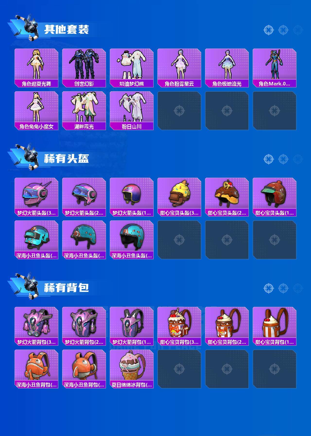 【热门品类】:粉装-梦幻火箭,粉装-童趣迷兔,粉装-缤纷油彩,套装-浪漫天命,套装-火箭少女101,套装-都市猎人,套装-深海小丑鱼,套装-小丑鱼,角色-2B战斗服款,角色-2P战斗服款,套装-龟仙人,套装-暗影哥特,套装-摄影小熊猫,角色-Mark.06